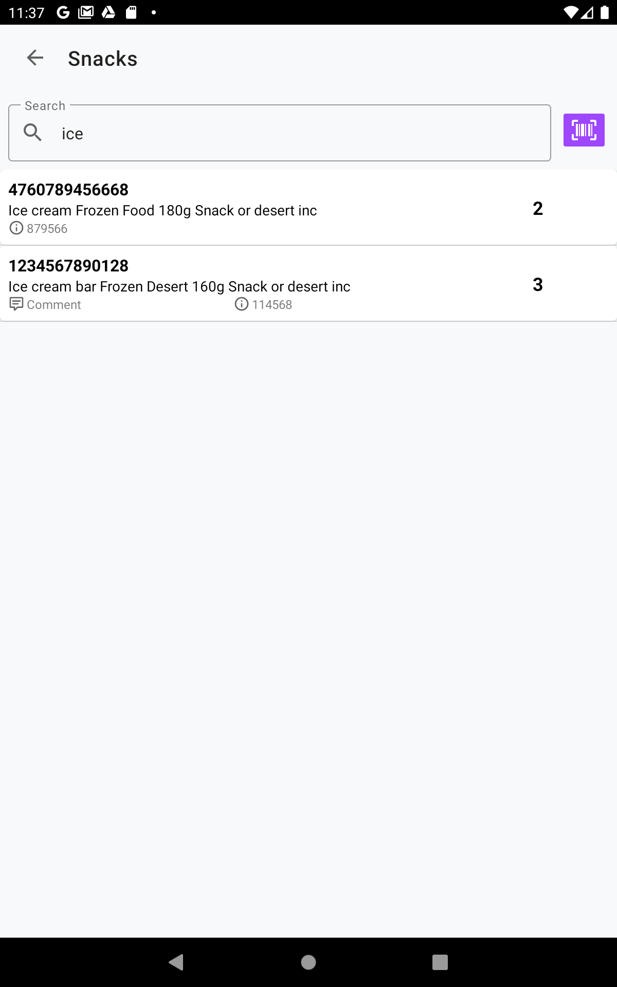 4. После того как штрих-код отсканирован и добавлен, его количество будет 1. Продолжайте сканировать этот штрих-код и количество будет увеличено на 1. Или же вы можете свайпнуть отсканированный штрих-код вправо или влево, чтобы увеличить или уменьшить количество.