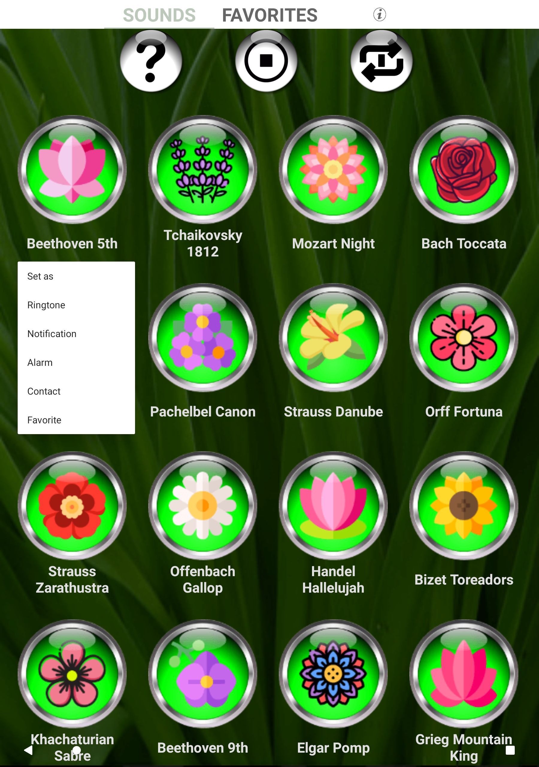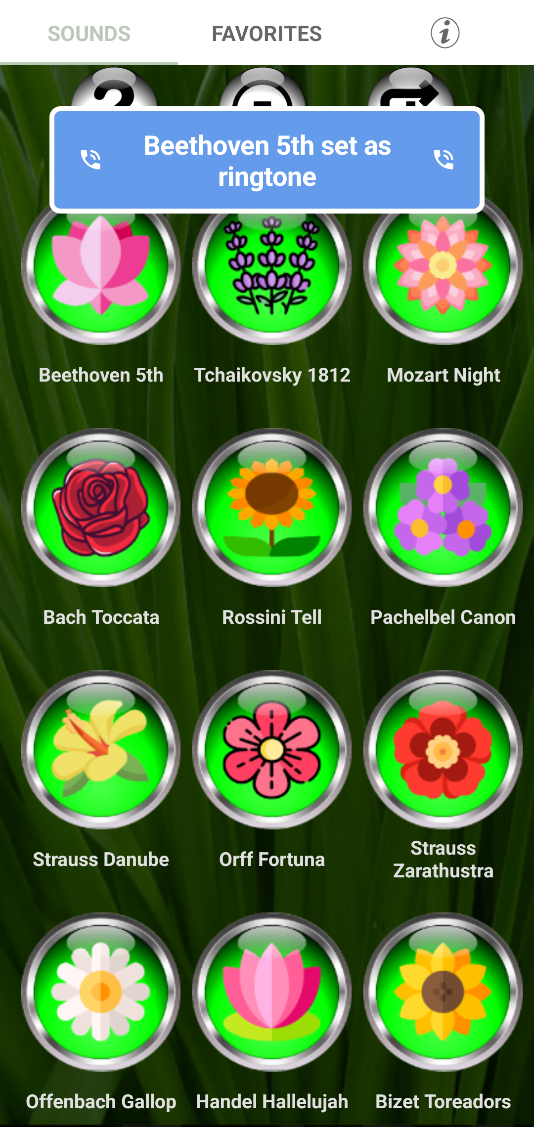 Улучшите звучание своего телефона с помощью классических музыкальных мелодий! Настройте мелодии своего телефона и придайте каждому контакту уникальность с помощью этого исключительного приложения. Изучите нашу коллекцию кнопок с цветочной тематикой и просто нажмите, чтобы прослушать каждый восхитительный звук. Чтобы получить доступ к дополнительным параметрам, нажмите и удерживайте (длительное нажатие) кнопку, чтобы: 🎻 Назначьте мелодию для определенного контакта 🎻 Установите его в качестве мелодии звонка по умолчанию 🎻 Настройте звук будильника 🎻 Персонализируйте свои сигналы уведомлений для текстов и электронных писем Откройте для себя радость персонализации вашего телефона снова и снова, отражая ваше настроение, времена года, праздники и многое другое! Распознайте 48 мелодий классической музыки, тщательно отобранных за их кристально чистое качество и впечатляющую громкость. Покажите свою утонченную сторону... эти мелодичные классические композиции идеально подходят для мелодий звонка, уведомлений и будильников. Просто нажмите на каждую кнопку, чтобы насладиться громким и четким звуком звонка. Если он попадется вам на ухо, нажмите и удерживайте кнопку, чтобы выбрать между установкой его в качестве мелодии звонка, будильника, звука уведомления или назначения его контакту. Скачайте прямо сейчас и измените свой опыт звонков, назначив каждому контакту уникальную классическую музыкальную композицию, что позволит вам идентифицировать вызывающего абонента, даже не взглянув на свой телефон! Это интуитивно понятное приложение, совместимое с большинством телефонов и планшетов, позволяет вам создать устройство, которое действительно отражает вашу индивидуальность. Среди известных композиторов, представленных в этом сборнике: 🎼 Моцарт 🎼 Бетховен 🎼 Бах 🎼 Вивальди 🎼 Чайковский 🎼 и многое другое! Избавьтесь от ограничений предустановленных уведомлений, будильников и мелодий на вашем устройстве. Дайте волю своему творчеству с классическими музыкальными мелодиями и сделайте свой телефон по-настоящему своим. Загрузите сейчас и откройте симфонию персонализированных звуков! 🎻 Часто задаваемые вопросы - Мелодии классической музыки 🎻 🎻 Как просмотреть рингтоны? 🎻 Чтобы просмотреть рингтоны, просто нажмите любую кнопку с цветочной тематикой в приложении. Каждая кнопка соответствует отдельной мелодии классической музыки. Нажмите кнопку один раз, чтобы прослушать предварительный просмотр звука. 🎻 Как установить мелодию для определенного контакта? 🎻 Чтобы установить мелодию для определенного контакта, нажмите и удерживайте (длительное нажатие) кнопку с изображением цветка, соответствующую нужной мелодии. Появится меню, позволяющее выбрать вариант установки мелодии звонка для определенного контакта. Выберите контакт, которому вы хотите назначить мелодию звонка, и она будет настроена для этого контакта. 🎻 Могу ли я установить мелодию звонка по умолчанию для всех входящих вызовов? 🎻 Да, вы можете легко установить мелодию звонка по умолчанию для всех входящих вызовов. Нажмите и удерживайте (длительное нажатие) кнопку в виде цветка, связанную с нужной мелодией. В появившемся меню выберите параметр, чтобы установить его в качестве мелодии звонка по умолчанию. Это применит выбранную мелодию ко всем в