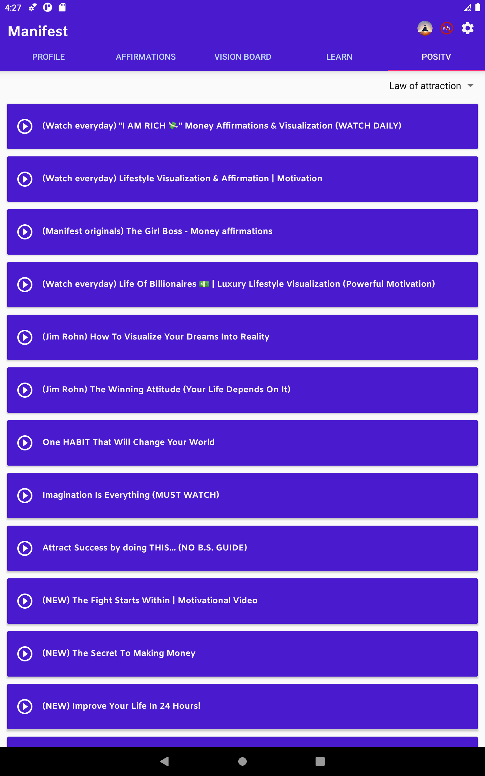 4. PosiTv – Law of Attraction library of videos and audio. Stay focused with a collection of the great law of attraction videos and guided visualization, attract money affirmations audio, and the law of attraction meditation videos