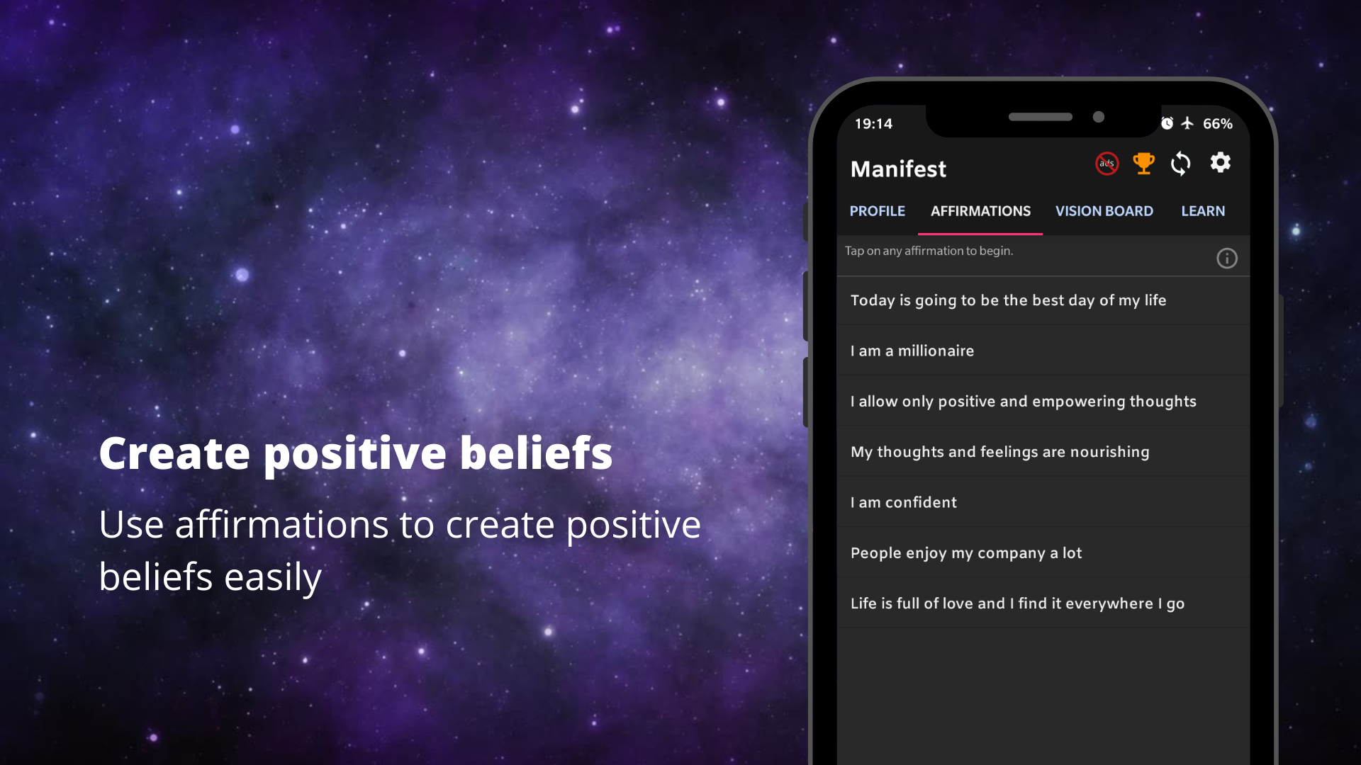 -> Affirm and attract with a large list of positive affirmations (select affirmations according to your goal).