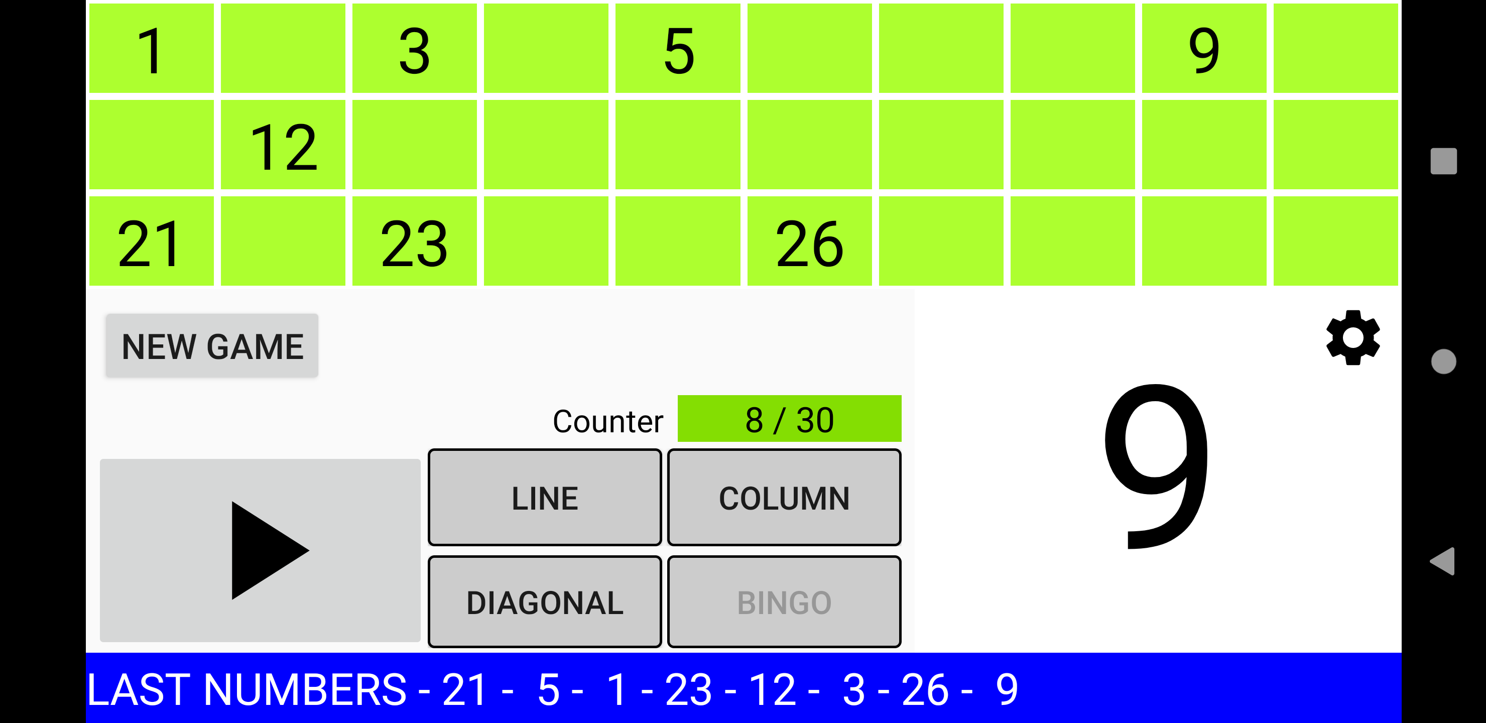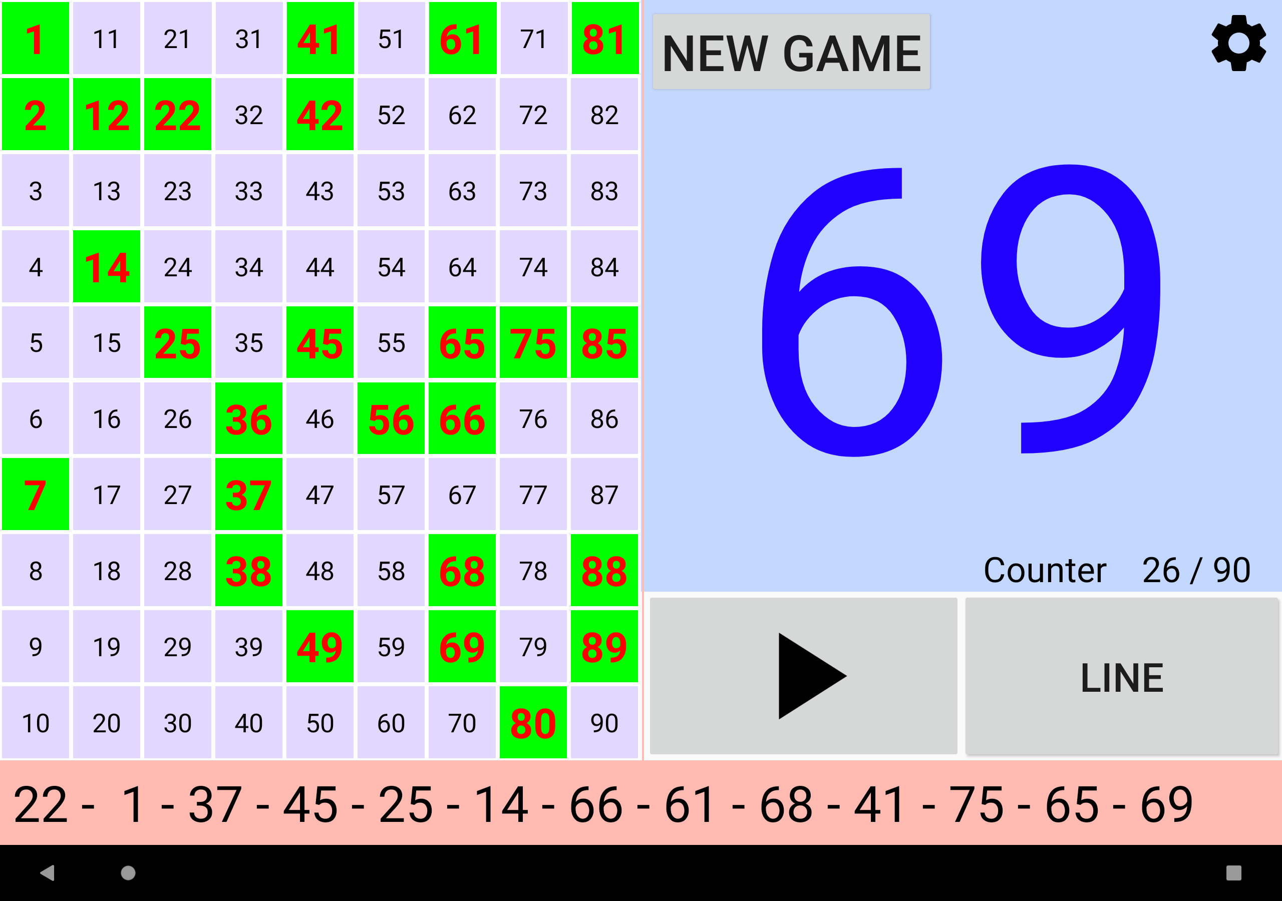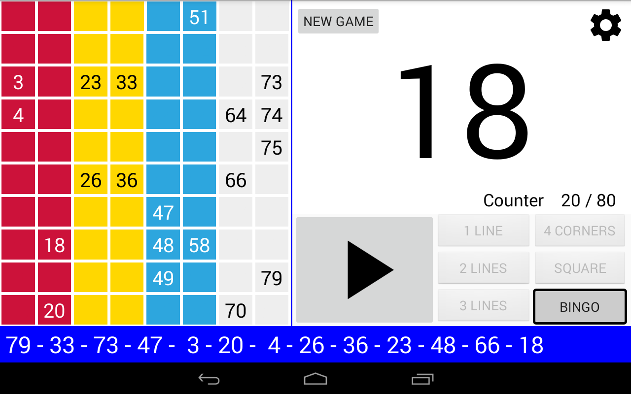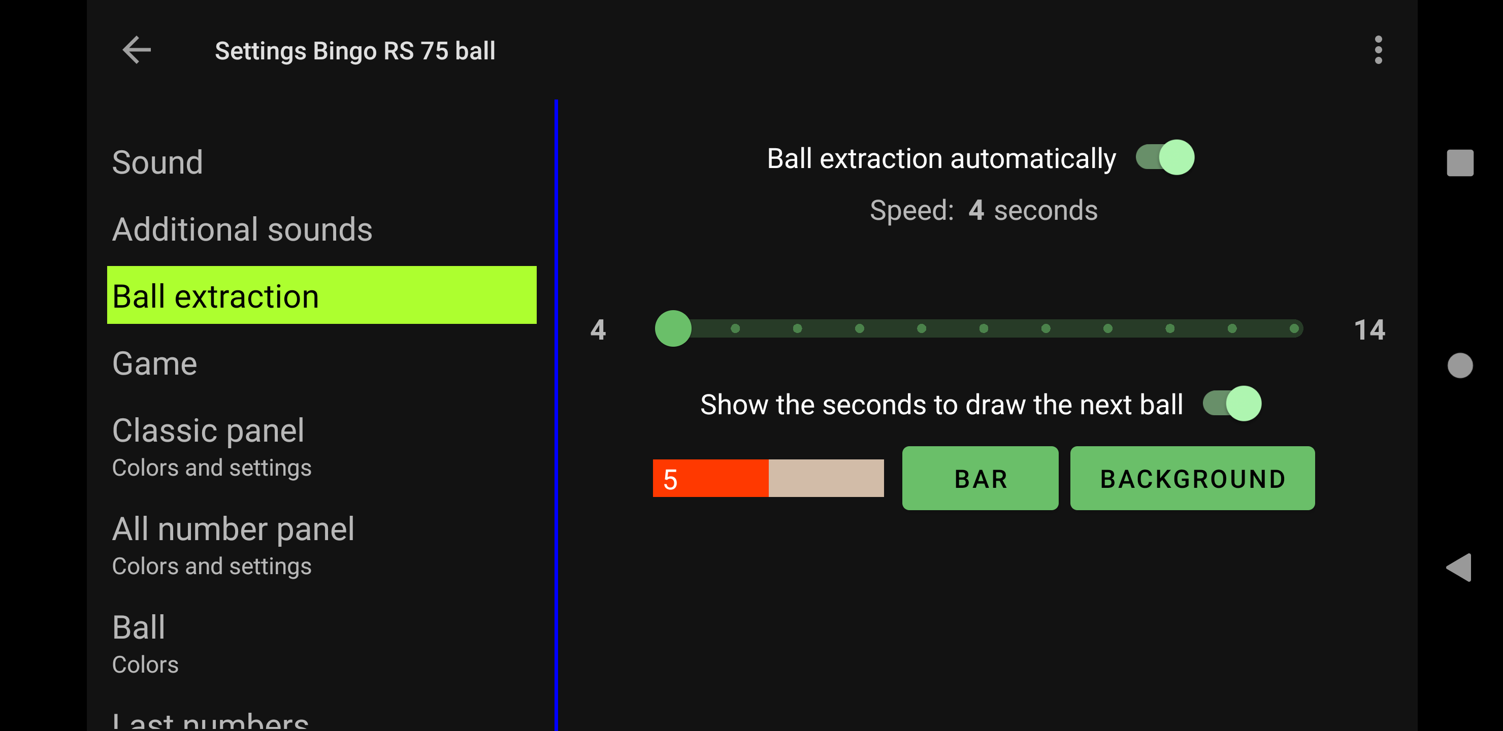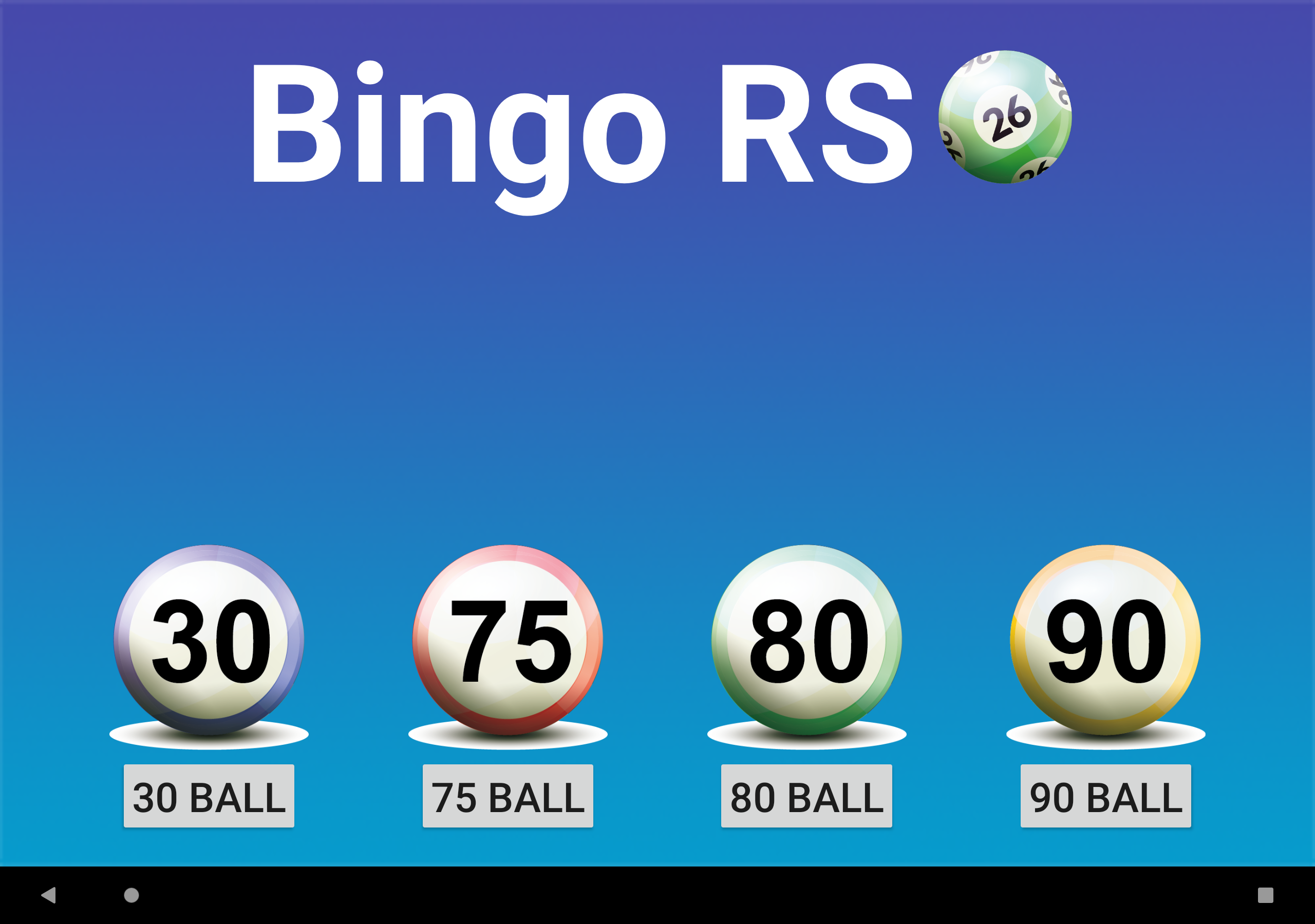 Простая, но мощная программа для вызова бинго. Четыре режима игры: 90 Ball Bingo, 80 Ball Bingo, 75 Ball Bingo и 30 Ball Bingo. Легко играйте с семьей или друзьями. Он работает на вашем планшете или телефоне. Большой размер номера для удобного просмотра. Распечатайте свои карты или используйте свое устройство в качестве карты с помощью приложения Bingo RS Cards, доступного в магазине Google Play, и начните веселье! Настраиваемые функции: ►Вы можете регулировать скорость автоматического извлечения шаров или извлекать шары вручную. ►Вы можете включать и выключать, чтобы звонить по номерам. ►Если вы включите звонки по номерам, вы сможете включать и выключать для звонков дополнительные звуки, например, при запуске игры или возобновлении игры. ►В 80 Ball Bingo, если включен вызов номеров, можно активировать и деактивировать вызов цветом столбца вызываемого номера. ►Если активированы дополнительные звуки, все сообщения можно настроить. ►Bingo RS можно настроить с вашими любимыми цветами. Попытайся! Или вы можете использовать цвета Bingo RS по умолчанию. ►Вы можете настроить визуальные эффекты появления номеров на панели для быстрой локализации: визуальный эффект текста и визуальный эффект фона набранного номера. ►Вы можете выбрать, будут ли отображаться все номера на панели, а набранный номер будет выделен, или будут отображаться только те номера, которые были вызваны. ►Вы можете выбрать, будет ли вызываемый номер выделен жирным шрифтом на панели. В 75 Ball Bingo вы также можете активировать и деактивировать визуальные эффекты букв БИНГО на панели: визуальный эффект буквы и визуальный эффект фона буквы, соответствующей вызываемому номеру. ►В конфигурации 75 Ball Bingo шаблонами можно управлять: можно добавлять, редактировать и удалять собственные шаблоны. ►Можно настроить отображение цветов в счетчике чисел. ►Вы можете выбрать, будет ли счетчик увеличиваться или уменьшаться. ►В 75 Ball Bingo вы можете выиграть, позвонив в Бинго и, при желании, позвонив по линии. ►В 75 Ball Bingo вы можете играть в случайном порядке или вручную. ►В Бинго на 80 шаров вы можете выиграть, позвонив в Бинго, а также, по выбору, набрав 1 линию, 2 линии, 3 линии, 4 угла или 4 номера в центре. ►В 30 Ball Bingo вы можете выиграть, вызвав бинго, а также, при желании, вызвав линию, столбец или диагональ. ►Возможность повторить набранный номер. ►Возможность звонить на двузначные номера один за другим. Например: 28 два-восемь. ►В Бинго на 75 шаров, если вы решите называть двузначные числа одно за другим, вы можете выбрать, следует ли называть букву B-I-N-G-O перед двумя числами. ►Возможность отображения обратного отсчета в секундах до розыгрыша следующего шара. Время отображается в числовом и графическом виде. Другие функции: ►Вы можете купить Премиум версию без рекламы. В любой игре зайдите в Настройки -> 3-кнопочное меню вверху справа -> Купить Премиум. ►Поддержка светлой и темной темы. ►Когда игра поставлена на паузу, вы можете прокручивать текст последних чисел влево и вправо, чтобы иметь возможность проверить все числа в игре в порядке их появления. ►В 75 Ball Bingo есть более 100 шаблонов на выбор. Каждая игра будет уникальной. ►Bingo RS использует механизм синтеза речи Google. Если на языке устройства доступно несколько голосов, выберите свой любимый голос, и Bingo RS будет использовать его. ►Можно выбрать голос, отличный от голоса устройства. ПРИМЕЧАНИ
