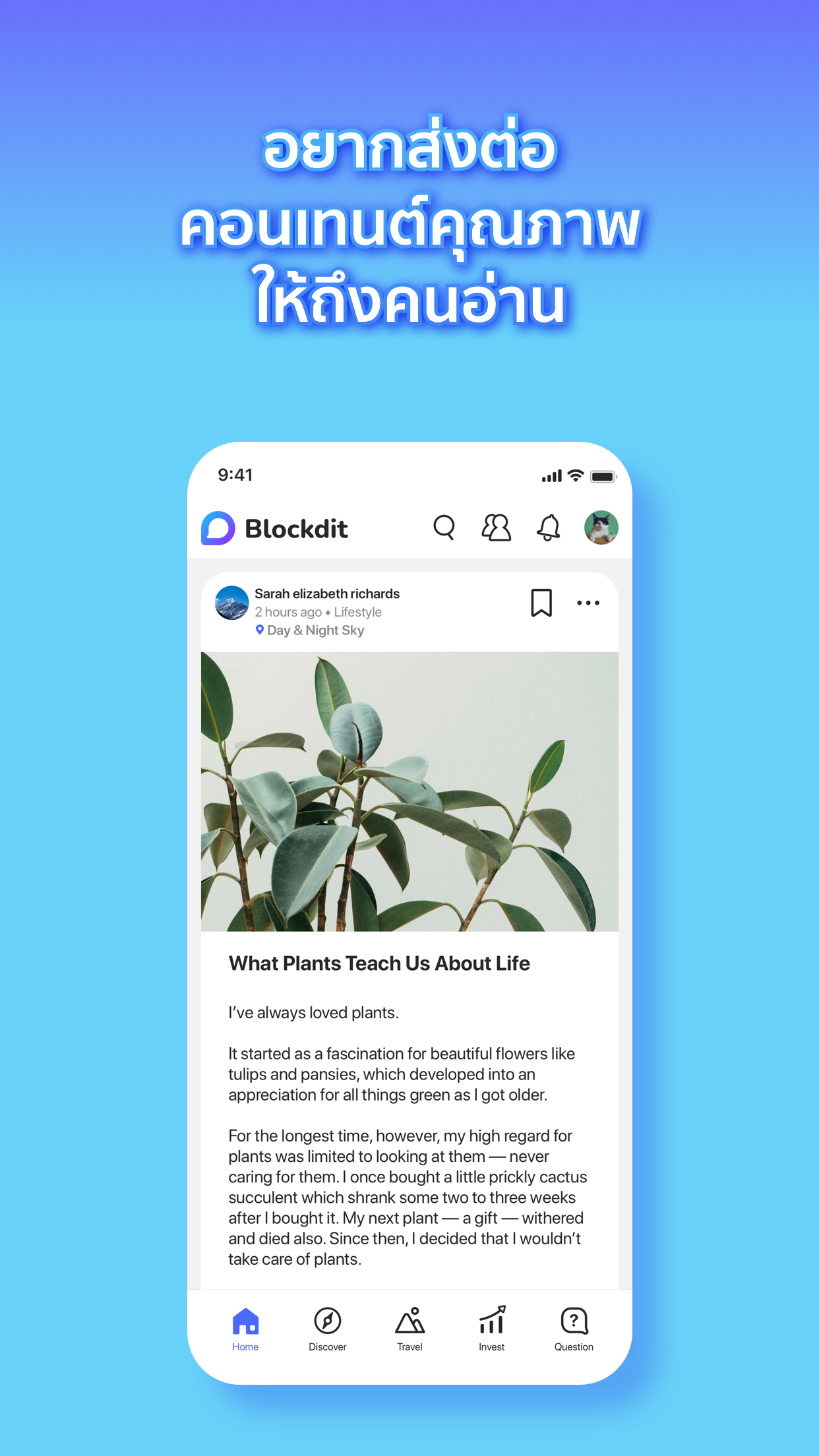 Blockdit - это платформа для тех, кто ищет новые и яркие идеи. Он становится популярным в группе людей, которые увлечены чтением, письмом и рассказыванием историй и просто хотят своими интересами повлиять на общество. Blockdit не имеет системы друзей, поэтому мы будем видеть только контент, за которым следили, и это будет воплощать идеи в жизнь. Присоединяйтесь к нашему сообществу здесь. Познакомьтесь с сообществом в Blockdit Создатели контента - Создавайте и делитесь своими идеями в статьях, видео и подкастах - Монетизировать свой контент на платформе - Наслаждайтесь нашими встроенными функциями для авторов, такими как режим черновика, расписание и статистика публикаций. Читатели - Находите новые идеи от людей и страниц столько, сколько хотите - Исследуйте множество тем во многих категориях - Следите за своими любимыми авторами и награждайте любимые сообщения - Прокомментируйте или отправьте прямое сообщение на страницу создателей контента, чтобы связаться с ними. Почему идеи появляются в Blockdit? - Различные типы контента для тех, кто предпочитает исследовать идеи в разных форматах Мы являемся универсальной платформой контента: статьи, видео, подкасты и серии (серия - это функция, которая объединяет несколько сообщений вместе. Пользователи могут просматривать сообщения непрерывно в серии). - Функция «Блокировать», предлагаемая для чтения длинных статей. Блок означает, что контент представлен в виде «блоков», который легко читается. Также пользователи могут читать статьи с фотографиями, вставленными между блоками. - Функция «Прочитать пост» для тех, кто находится вдали от экрана, но все же ищет идеи из статьи. Эта функция будет читать вам сообщения, когда вы находитесь вне приложения или даже когда ваш телефон находится не прямо перед вами. - Рекомендация «Похожие сообщения» для каждого контента. Связанные сообщения отображаются после того, как вы прочитаете сообщение и проведете по экрану вверх. Это поможет вам получить новые и многие другие идеи по различным аспектам, связанным с темами публикации. - Ежедневное уведомление приложения для выбранного контента будет отправляться непосредственно вам в течение дня, по крайней мере, 10 историй в день, чтобы вы всегда были в курсе Таким образом, если вы ищете новые блестящие идеи или хотите, чтобы платформа влияла на общество своими интересами, Blockdit как раз для вас. Blockdit. Идеи случаются.