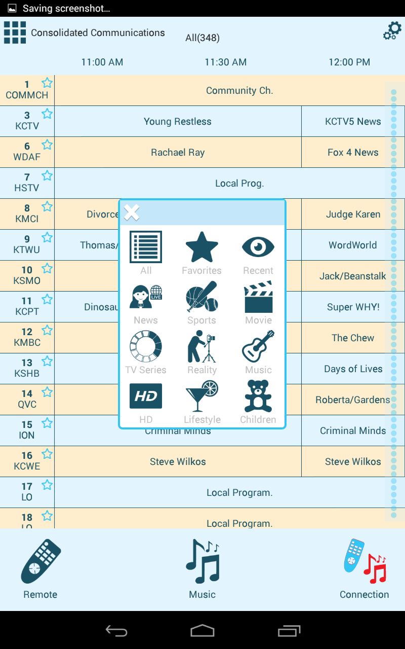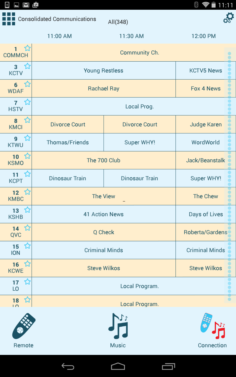 • Interactive channel guide and show details for any cable, satellite, or broadcast services