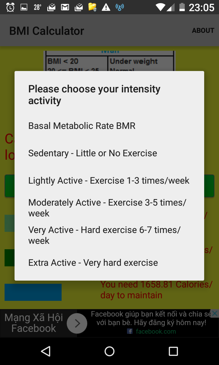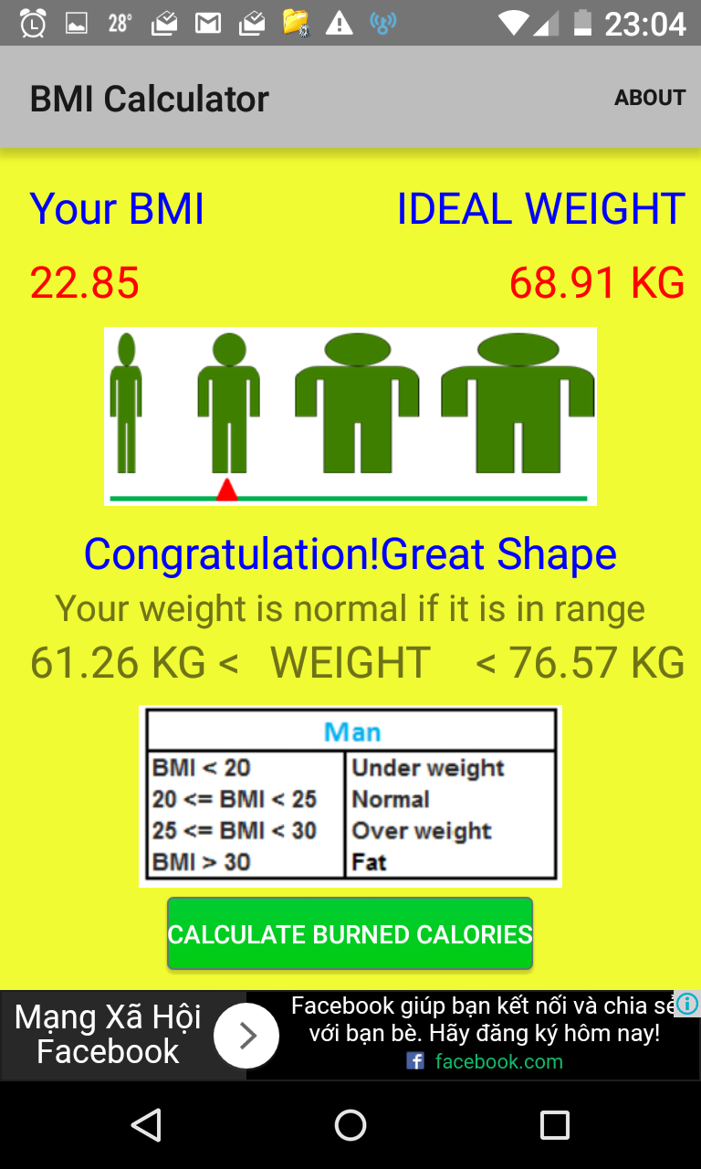 Знаете, ИМТ индекс проверить свое здоровье и ваше тело. Ваш ИМТ является измерение веса тела на основе вашего роста и веса. Хотя ваш ИМТ на самом деле не "мера" ваш процент жира в организме, он является полезным инструментом для оценки здоровый вес тела на основе вашего роста. Благодаря простоте измерения и расчета, это наиболее широко используемый диагностический индикатор, чтобы определить оптимальный вес человека в зависимости от его высоты. Ваш ИМТ "номер" будет информировать вас, если у вас недостаточный вес, нормальный вес, избыточный вес, или страдают ожирением. Тем не менее, из-за широкого спектра типов тела, распределение мышц и костной массы, и т.д., он не подходит для использования его в качестве единственного или окончательного диагноза указанием на. ИМТ калькулятор расчета ИМТ и сделать вы знаете, ваше тело нормально или нет. Это не только рассчитать ИМТ, но и рассчитать свой идеальный вес, калории, нужно ежедневно и рассчитать калории, потребляемые при запуске или ходить. Это означает, более чем на 1 ИМТ калькулятор это значит 1 инструмент для проверки много индекс вашего здоровья. Вы можете использовать его каждый день, чтобы проверить калорий вы тренируетесь каждый день. Особенности BMI Calculator: - Индекс Рассчитать ИМТ - Рассчитать Идеальный вес - Рассчитать Диапазон от вашего веса - Рассчитать калорий вам нужно каждый день - Рассчитать сожженных калорий, когда вы тренируетесь (ходите или бегаете) - Обеспечить стандартный вес для детей (мужского и женского) - Обеспечивают некоторую самый важный совет для потерять или набрать вес