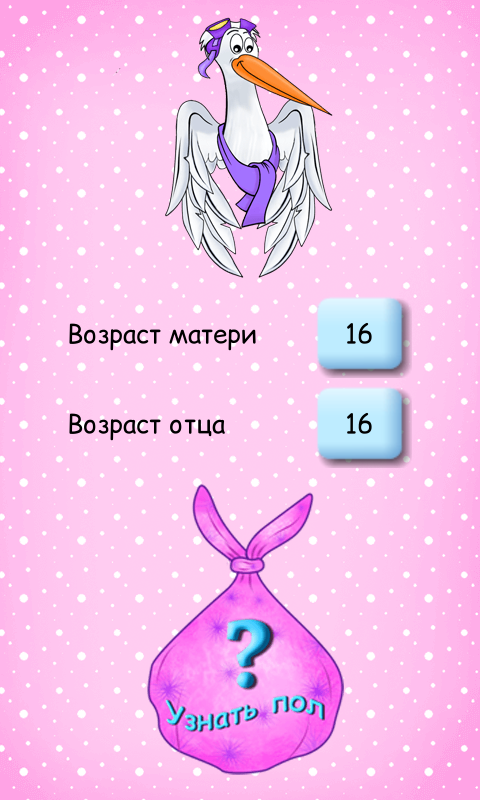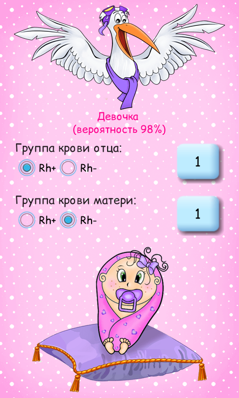 ✓ Сделайте аисту индивидуальный заказ!С помощью приложения "Мальчик или девочка: планирование пола ребенка" вы сможете с большей долей вероятности предугадать пол будущего малыша. Существует множество методик планирования пола будущего ребенка: древнекитайская таблица, по обновлению крови, японский метод, по группе крови и резус-фактору и т.п.