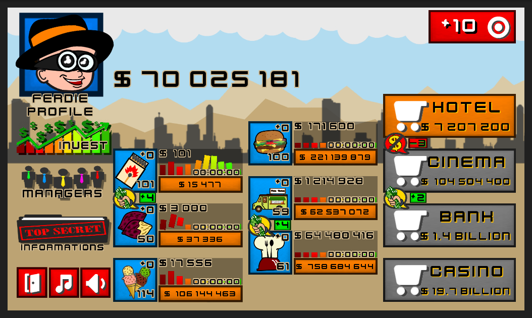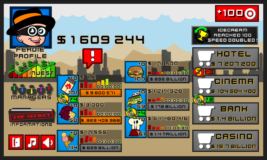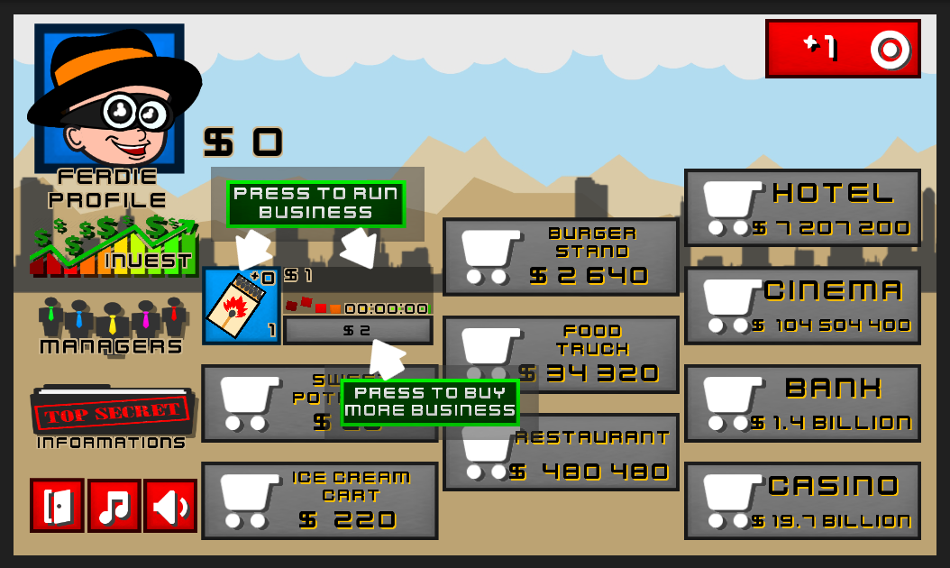 All you need to do is process run your businesses, increment them, hire a manager, invest more on product and most of all, trade them for secret recipes and techniques for better business to run!