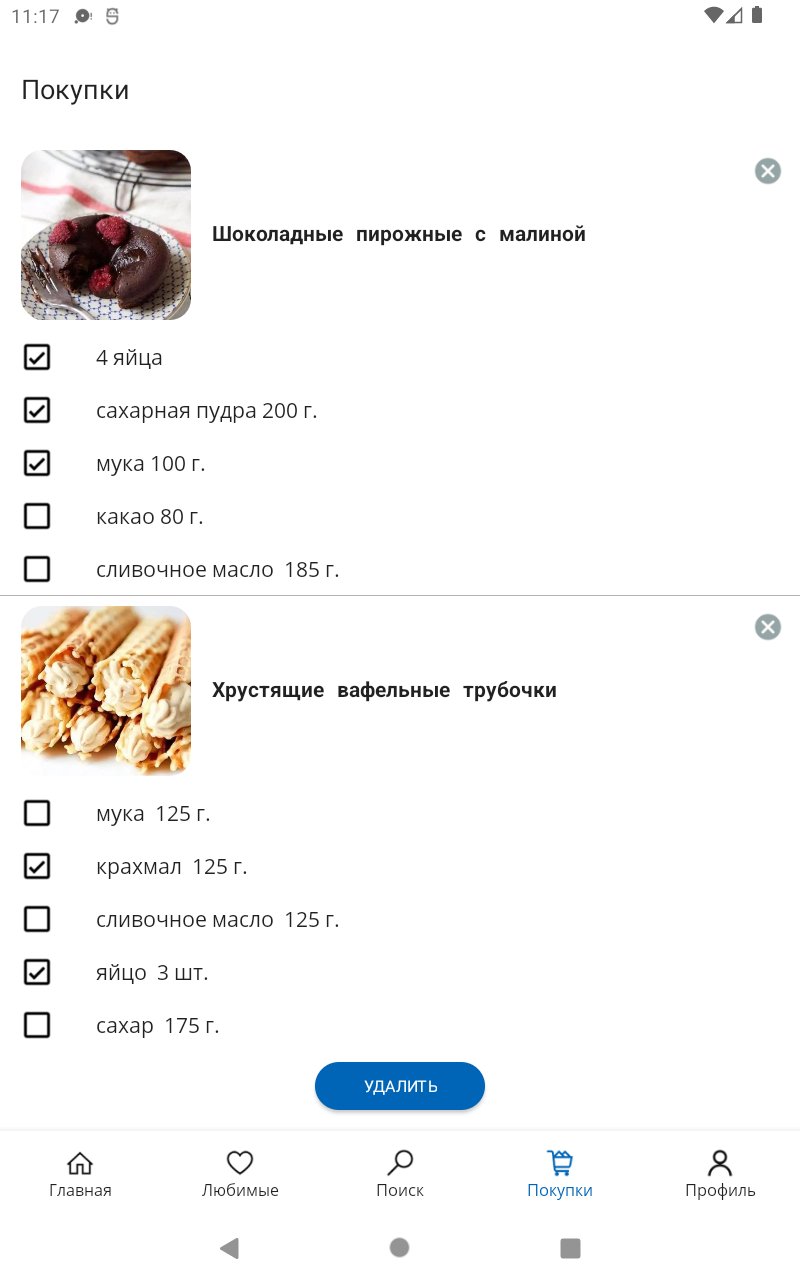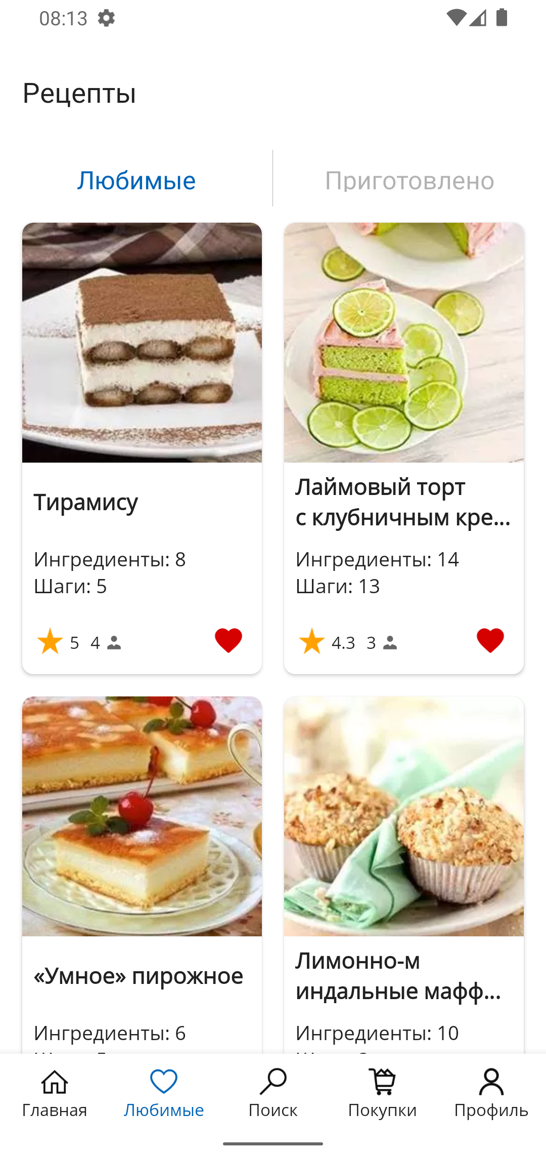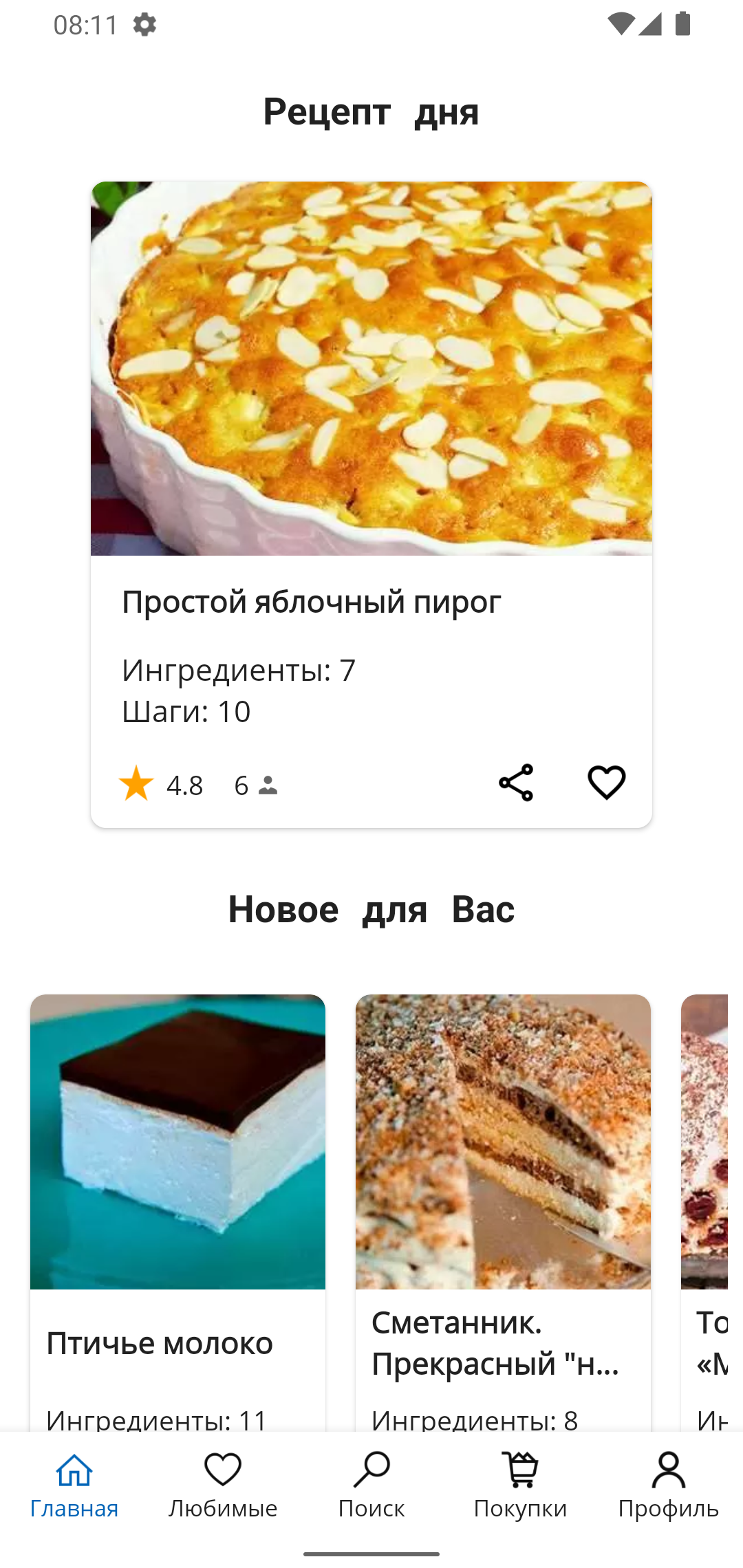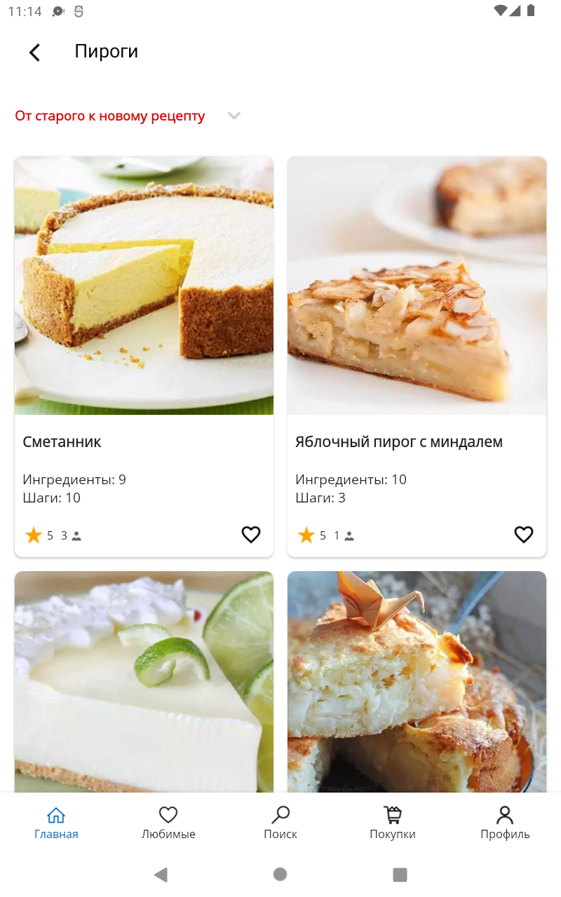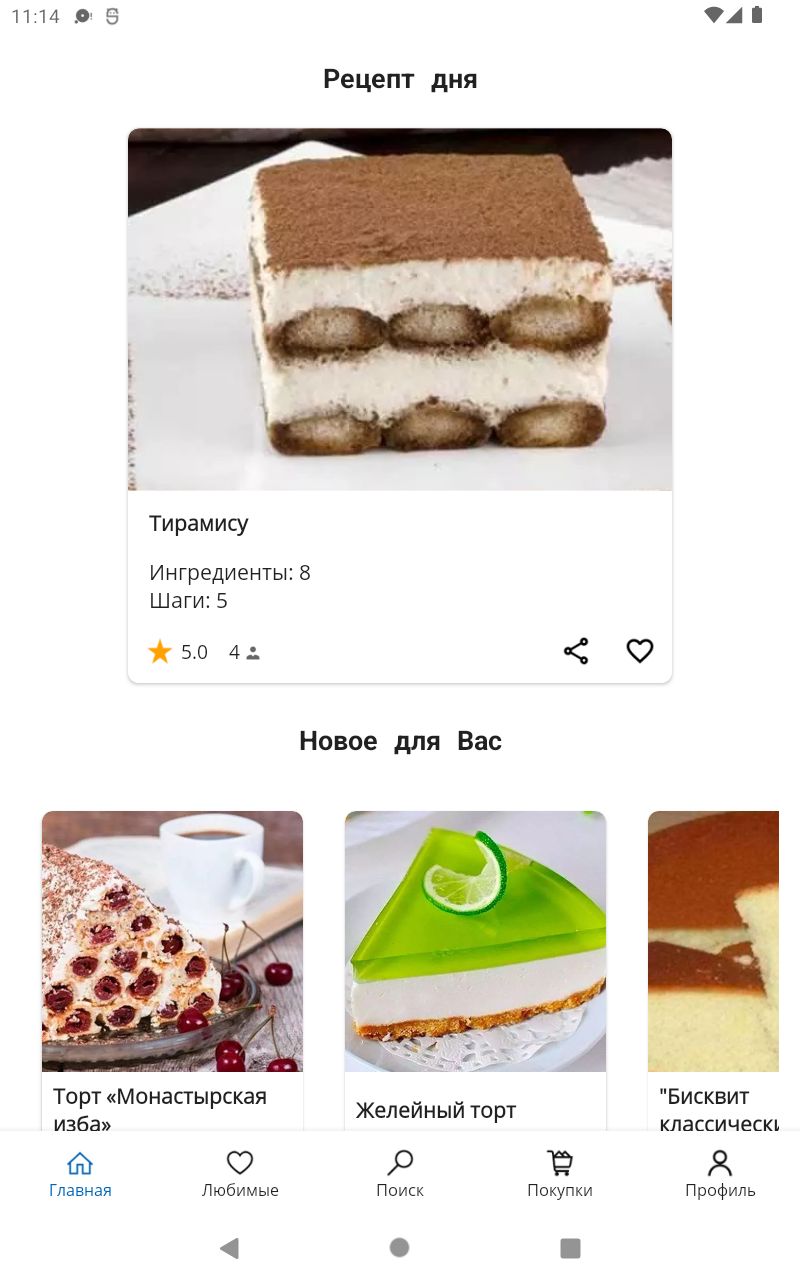 Вы можете выбирать понравившиеся Вам блюда и сохранять рецепты в Избранные. Также Вы можете составлять план покупок для приготовления рецептов.
