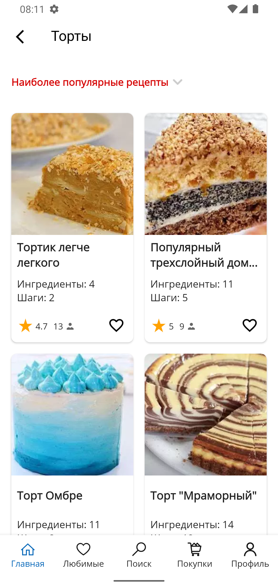 Все рецепты тортов и десертов разделены на категории для удобного использования. Также в приложении есть удобный поиск по названиям, и по ингредиентам, который упрощает для Вас выбор рецептов!