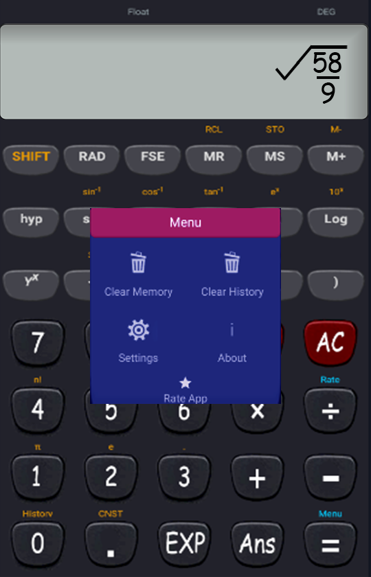 Эта математика калькулятора сохраняет естественный дисплей, что означает, что вы можете вводить уравнения и выражения точно так же, как написано. Фракции, радикалы, выражения с p и шаблоны функций исчисления - все есть. Точные ответы могут включать в себя фракции, квадратные корни и коэффициенты p. Я люблю экономить время и силы. Я помню все ваши операции и оставляю вам возможность увидеть их снова, когда захотите, что делает меня идеальным инструментом для добавления квитанций, сохранения ваших счетов или даже расчета налогов. Кроме того, если вы прекратите приложение, чтобы сделать что-то еще, ваши данные будут сохранены в следующий раз. Не нужно вводить одну и ту же операцию дважды. у нас есть хороший дизайн для этого калькулятора, который очень удобен для использования и отличается калькулятором, который вы можете использовать, как калькулятор статистики. с вычислением включают GST, вычисляют простые и продвинутые математические функции в эргономичном приложении. Особенности - Калькулятор алгебры. - Поддерживает большинство функций fx 500, fx500, JX570ms, 570vnplus, 991es plus, 991ms, fx570esplus, fx-82 или TI-30XB, fx 4500, 82ms, 82es, fx-82AU PLUS II, 100AU, fx 4500pa, 991ex , fx 260. - Отображение клавиш памяти. - Выберите между простой или полной клавиатурой. - Опция вибрирует активатор / désactiver le mode. - Отображает символы оператора при расчете. - Хактическая обратная связь. - История результатов. - Скопируйте результат вычисления буфера обмена, коснувшись области отображения. «Мы надеемся загрузить этот научный калькулятор, который не займет много места в вашем мобильном телефоне».