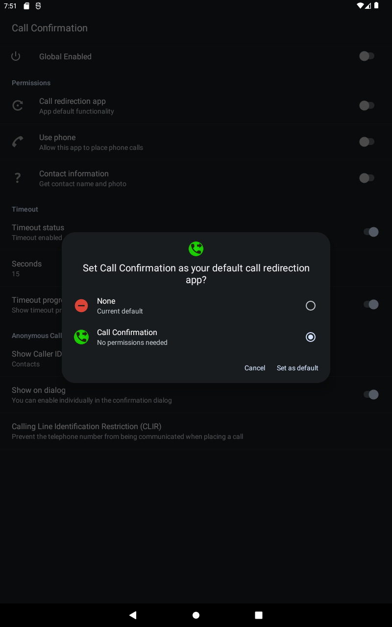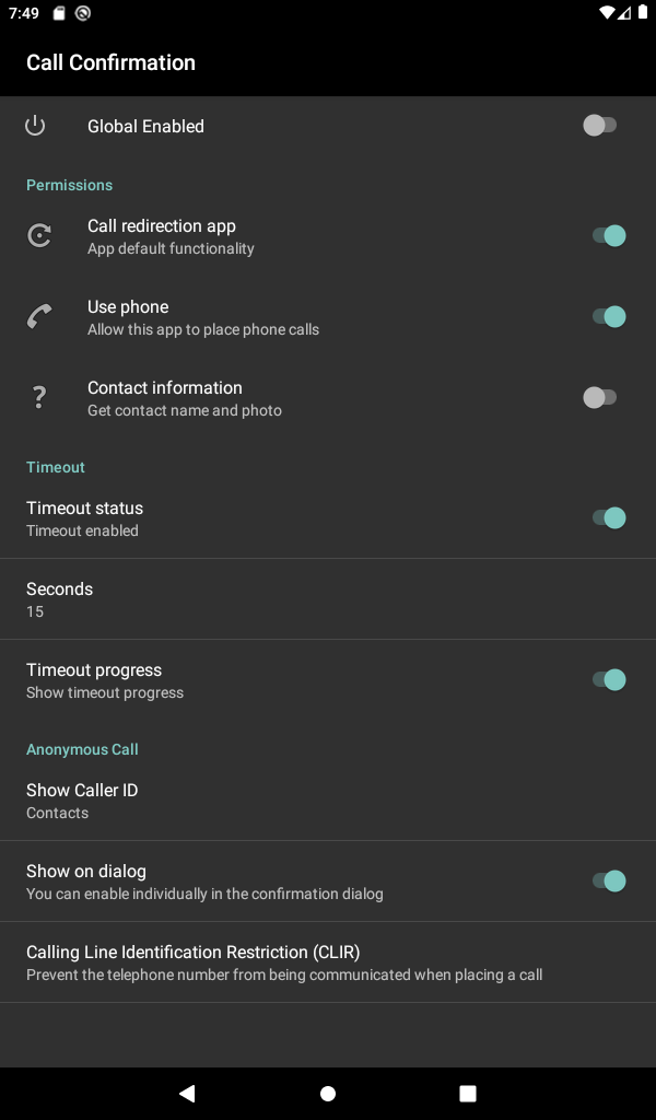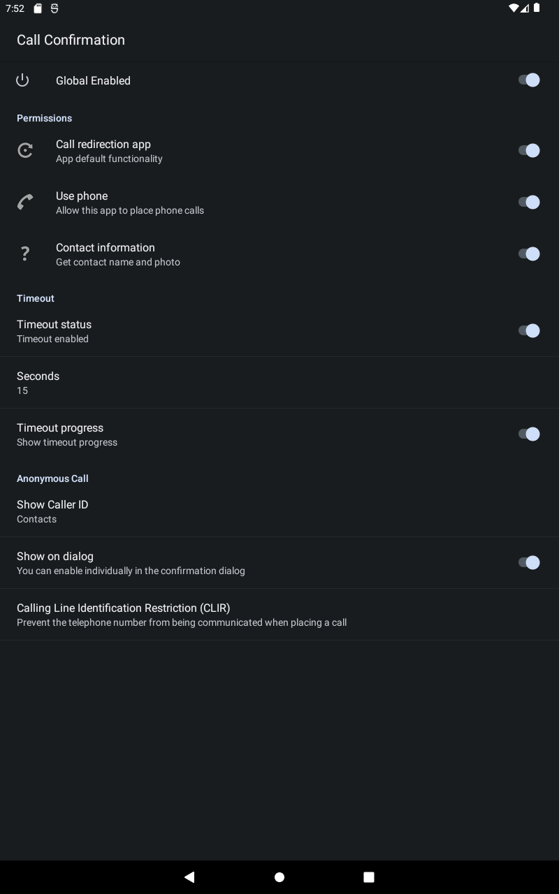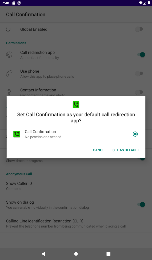 Android очень сильно изменился за последние несколько лет, но что-то осталось нерешенным, случайные исходящие телефонные звонки! Сколько раз вы случайно звонили кому-то с телефоном в кармане, даже не подозревая об этом? Или коснуться истории звонков, чтобы увидеть детали звонка, но вместо этого телефон начал набирать номер? Это приложение определяет, когда выполняется вызов, и отображает диалоговое окно для подтверждения, показывая номер, имя контакта и фотографию, если она доступна. Кроме того, вы можете выбрать, хотите ли вы скрыть свой номер (идентификатор вызывающего абонента) от отображения на приемнике. Вы можете настроить отображение номера для Оператора по умолчанию, Контакты, Избранное или Никто; индивидуально при звонке. Если у вас подключена Bluetooth-гарнитура, подтверждение можно пропустить. Это бесплатная версия без рекламы, у вас есть время для тестирования с полной функциональностью и покупками в приложении, чтобы снять ограничение по времени. Наслаждаться. P.S. хотя обычно это не требуется, на некоторых устройствах вам необходимо снизить уровень оптимизации батареи в настройках или других конфигурациях, таких как разрешение автоматического запуска, работа в фоновом режиме, отображение всплывающих окон или что-то подобное, зависит от марки. Вы можете попробовать https://dontkillmyapp.com/?app=pt.easyandroid.callconfirmation Когда вам это удастся, я был бы признателен за публикацию связанной/полезной информации. Пожалуйста, не говорите, что приложение не работает на вашем устройстве, я всегда даю возможность попробовать перед покупкой, не обвиняйте разработчиков в ошибках телефонных заводов.