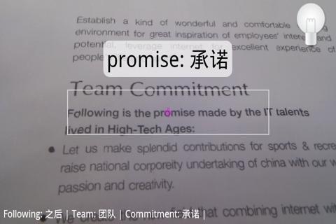 Извлечение слова текста с камеры телефона и обеспечит онлайн-перевод. Просто наведите камеру на слово, переведенное результат немедленно покажут на экране.