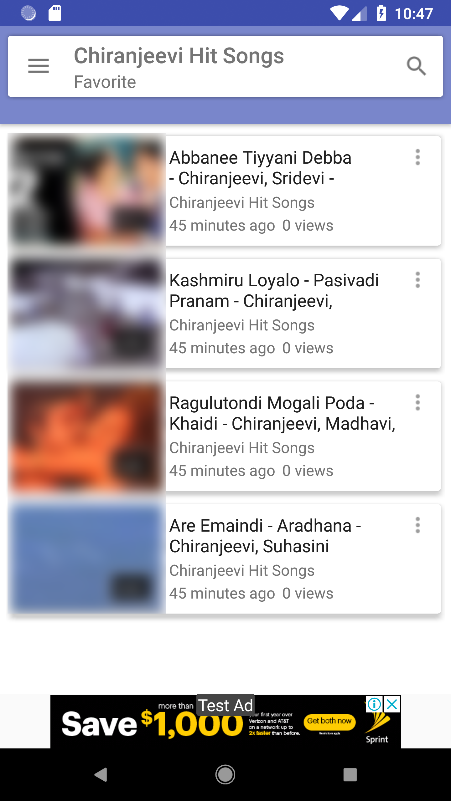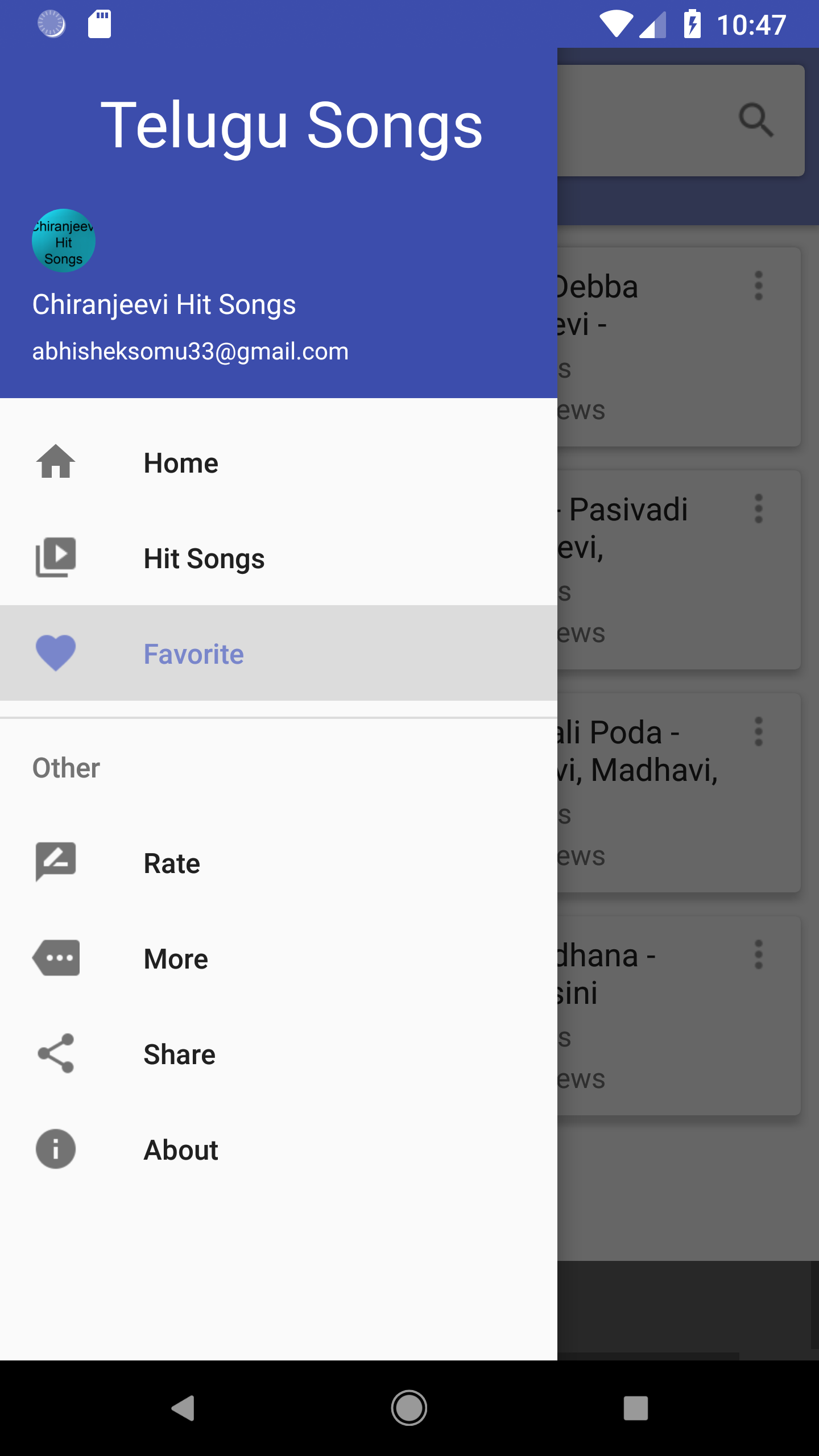В приложении «Chiranjeevi Hit» можно легко добавить в закладки их любимую видео-песню Chiranjeevi, а затем просмотреть их, перейдя в раздел «Избранное» на панели навигации.