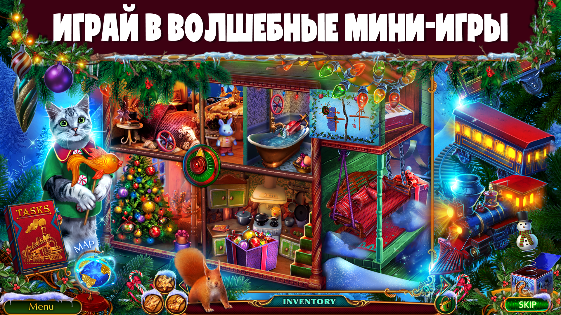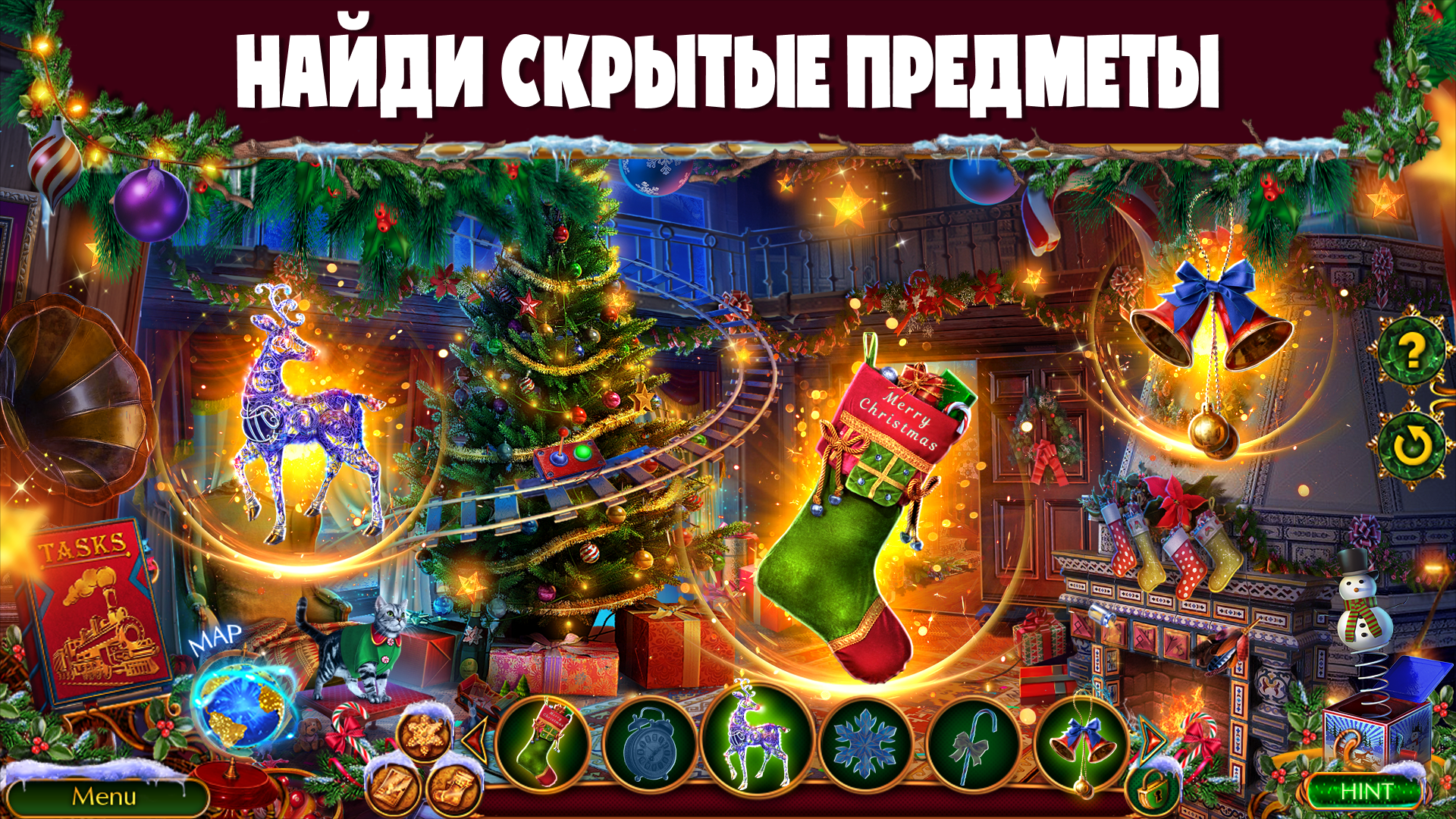 После прохождения основного сюжета нашего квест поиск предметов f2p Вы можете отправиться в новое новогоднее приключение в бонусной игре! Не дайте духу Рождества погаснуть в сердцах взрослых и детей! Поймайте похитителей подарков! Вам понадобится вся ваша смекалка и отвага!