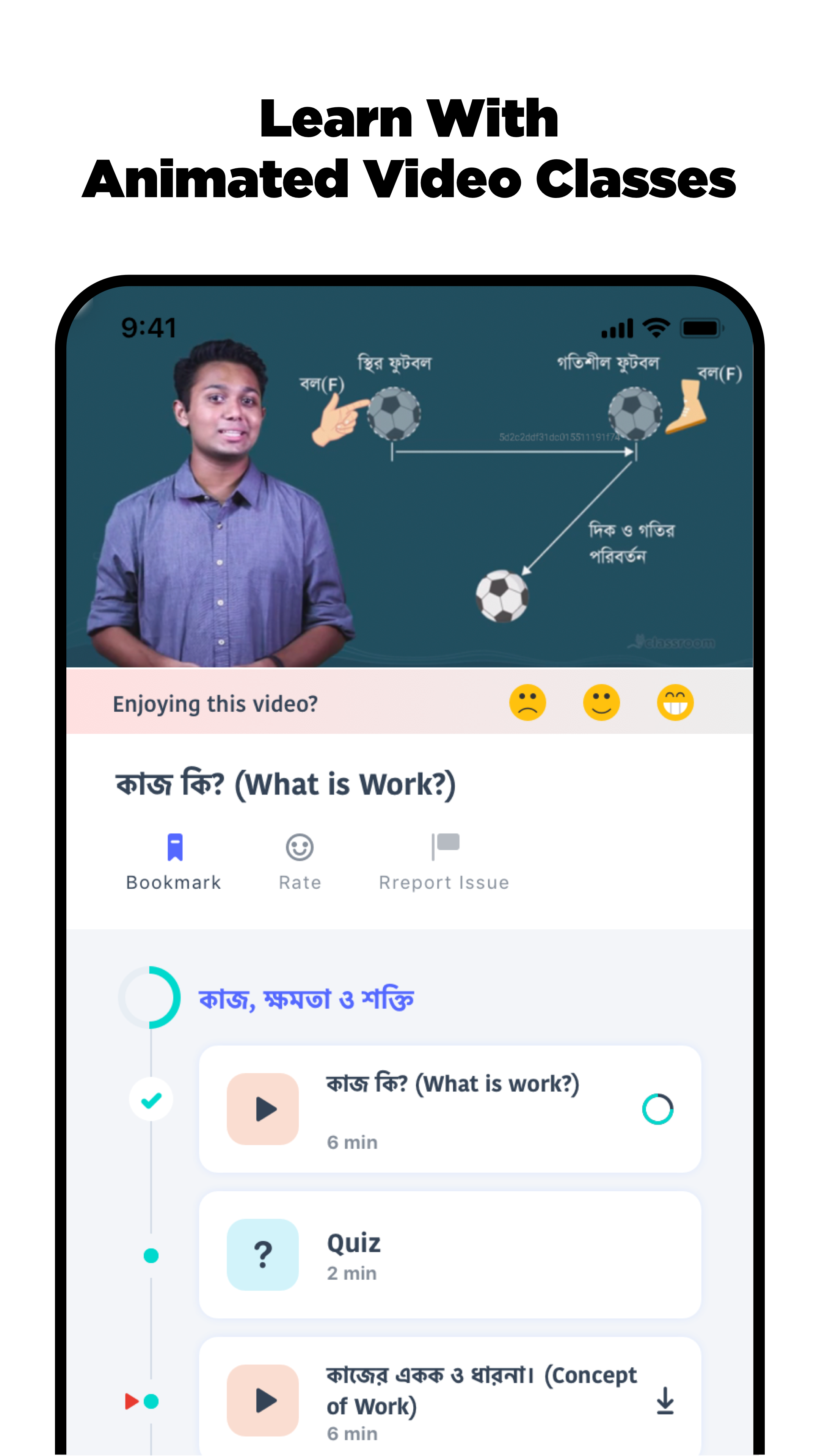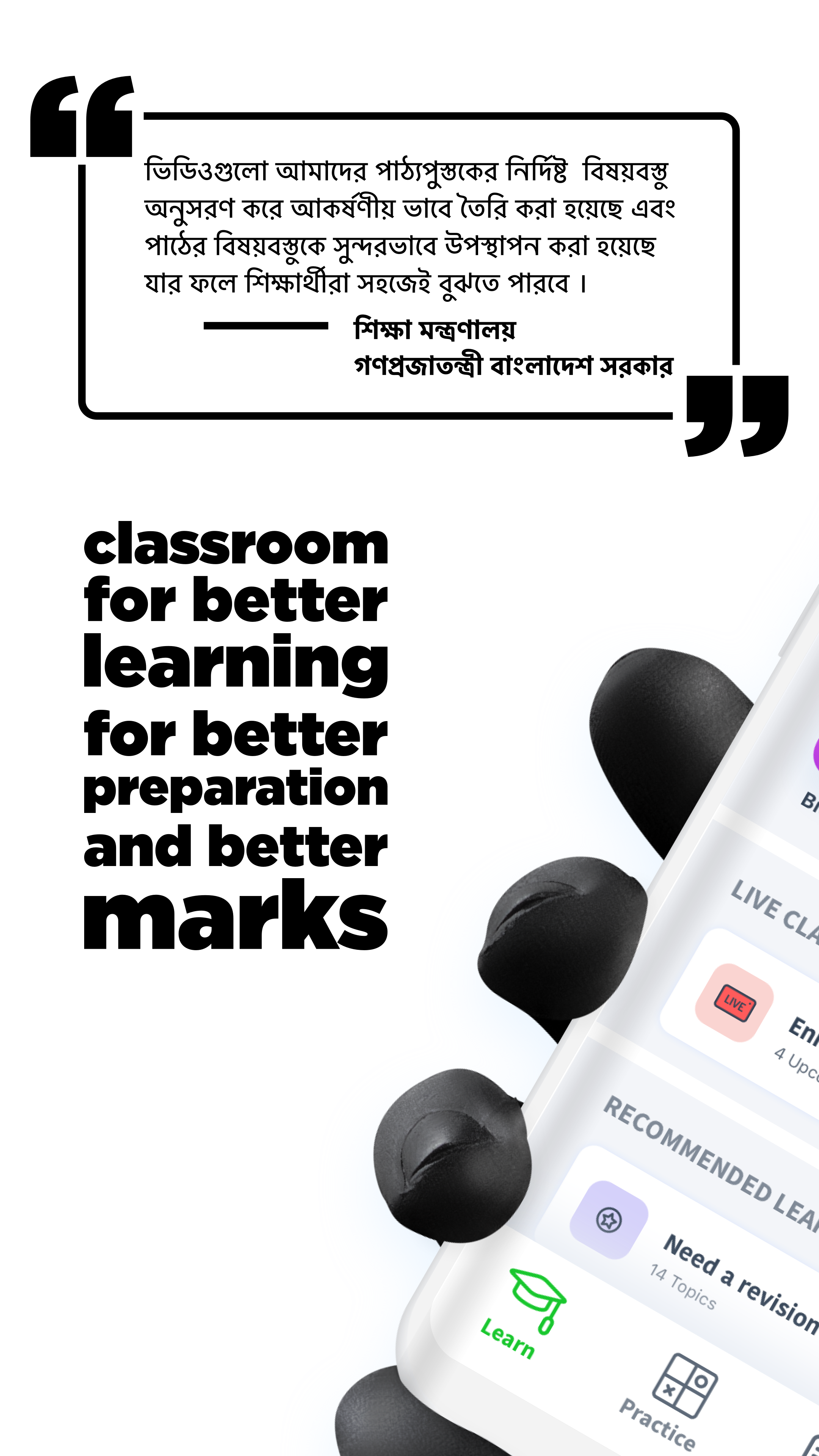 Classroom - крупнейшая образовательная онлайн-платформа, предлагающая студентам Бангладеш полное академическое решение. Это единственная платформа, которая заботится об академической карьере студента, предлагая массу потрясающих видеоуроков, живых занятий, онлайн-экзамен с потрясающей оценкой бумаги, уникальных заметок и т. Мотив этого приложения - предоставить комплексную платформу электронного обучения для студентов SSC, HSC и приема в университеты. Каждую свою лекцию Classroom готовит первоклассными преподавателями из всех сфер страны. Каждый из учителей имеет замечательное образование и хорошую успеваемость в таких известных учреждениях, как BUET, Медицинский колледж Дакки и Университет Дакки. Они готовят каждую лекцию очень увлекательно, увлекательно и познавательно. Итак, ученикам никогда не бывает скучно в прохождении Класса. Почему вы должны выбрать Класс- • Видеоуроки: Классная комната предлагает массу замечательных видеоуроков, посвященных каждой из тем предметов, относящихся к естествознанию, бизнесу и гуманитарным наукам, включая общие предметы бангла, английский язык, общую математику и ИКТ. Видеоуроки раскрывают основную концепцию темы с большим количеством примеров. • Уникальные заметки: здесь вы найдете заметки с примерами и пояснениями с некоторыми интересными советами и приемами, которые помогут легко усвоить каждый урок. Мы разделили заметки на две категории: базовые и концептуальные. «Базовый» - это фундаментальное понимание урока; в то время как «Концепция» включает в себя обширное письменное обсуждение тем. • Live Class: чтобы взаимодействовать с лучшими учителями страны в интерактивном режиме, вы должны регулярно посещать наши живые классы. Это даст вам возможность поставить свои проблемы перед наставниками и быстро найти решение. Несомненно, вы почувствуете аромат обучения не меньше, чем класс вашей школы / колледжа. • Стандартный экзамен: проверьте себя на том, что вы узнали. Будьте уверены в своих успехах и понимании, сдавая онлайн-экзамен. Не волнуйтесь, наши онлайн-экзамены должны проводить преподаватели, читающие лекции. Итак, вас будут оценивать лучше, чем вы думали. • Оценка на бумаге: наш онлайн-экзамен - это не просто система MCQ на основе кликов. Мы проводим письменный экзамен, на котором ваша работа оценивается так, как вы никогда не могли подумать. У вас будет экзаменационная работа с записями о ваших ошибках и их решениями, предоставленными нашими наиболее талантливыми экзаменаторами.