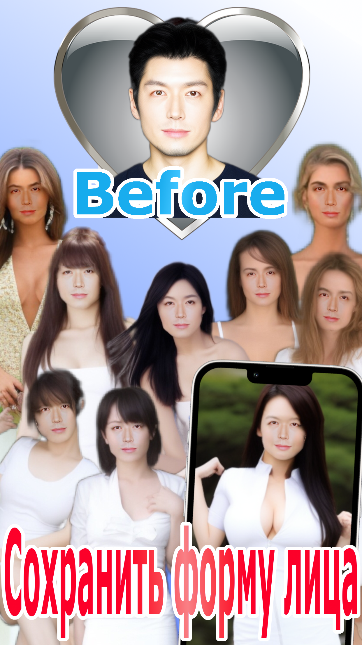 Это популярное среди мужчин приложение для обмена телами. Вы меняете тела, а не лица.