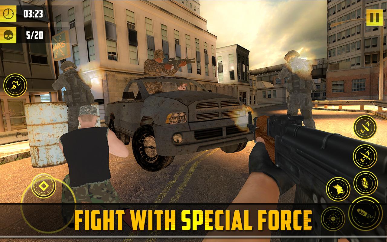 An epic story of a commando return from war, find his daughter missing, reportedly kidnapped by terrorists hiding them self in a war-torn city. The brave commando launched a counter commando strike mission called commando vengeance to rescue her daughter and killing everyone involved.The elite commando begin to fight for her daughter and entered into the city of dangers and hence commando games begins. Commando Vengeance a commando mission based on modern commando shooting game with a series of commando strike mission to accomplish to the final point to rescue the kidnapped. The Aim in each commando vengeance game mission is to counter attack on terrorist , a ground based counter commando strike to kill everyone and survive in the missions. PLAY COMMANDO GAME WAR MISSIONS: commando attack silently and deadliest way, commando strike kill the terrorist in counter terrorist strikes and eliminate the target to move next in the commando vengeance game. Play commando vengeance counter strike shooting game as a Commando SWAT Special Forces agent, your job Shoot terrorist by counter terrorist strike in commando vengeance war game missions. Counter Terrorist and counter terrorist strike commando vengeance FPS shooting game in which a commando shoot terrorists, A 3D commando vengeance counter terrorist shooting simulation game. commando vengeance war missions, counter strike on enemies, kill all terrorist through counter attack with rapid commando shooting machine guns, hand grenades and other weapons. ENTER INTO WAR-TORN CITY: As a special agent commando, an ultimate shooting commando to take revenge and rescue your daughter through commando vengeance operation, kill terrorists, and shoot terrorist to death brutally. Terrorist has occupied the cities high strategic buildings and roads, and they are planning terrorist attacks, you are assigned on a special anti-terrorist mission by by SWAT Counter Terrorist unit. MULTIPLE THRILLING GAME MODES: Commando Vengeance have three thrilling game modes. First a story line mission based commando vengeance missions.Despite actions games, this commando game with commando vengeance missions and endless commando shooting modes. These features make this commando game quite unique, interesting and addictive action game. In this commando game there would be modern weapons from commando vengeance will have a VR mode functional soon. Commando vengeance have multiple weapons options and a shop for gun and medical kits to survive in the game. modern sniper to modern machine gun, you can choose your weapon according to your commando mission requirement.there is no limit of killing, actually this commando game is a killing and shooting spree. FIGHT COMMANDO VENGEANCE WAR ALONE: Commando Duty is to fight , shoot , kill and complete mission they are sent for. in this commando vengeance war game, prove your commando shooting skills, counter strike the enemies. stand by commando duty, then download now this commando duty game. commando 3d action games with mission commandos and commando silent killer 3d armed games to play commando missions frontline commando actions. commando skilled combat training in army base with army extreme commando survivor. fps game to kill shot in 3D commando games comando metal slug 3d game playing metal slugg commandos shot kommando and army assassin during base attack commando counter attack in war of commando missions shot like lone wolf commando of pak army and ssg. Have advanced gun of commandos to fight commando games in forest game of commando shooting commando games with commandos squad along kommando, shooting adventure commando combat shoot with advanced gun in the forest counter secret agent elite to fal bak hostage. COMPLETE DANGEROUS COMMANDO VENGEANCE MISSIONS Master challenging objectives in Assault, Sniper and shooting missions to clear war-torn city, be a front line commando and a special operations solider and take revenge by killing all enemies.