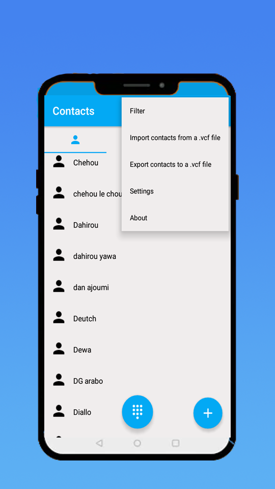 Сохраните ваши контакты и синхронизируйте их на всех ваших устройствах. Воспользуйтесь организованным и автоматически обновляемым списком контактов. • Просмотр контактов по учетной записи (например, бизнес-аккаунт или личный кабинет). • Добавить контакты и легко редактировать информацию (номера телефонов, адреса электронной почты, фотографии и т. Д.). • Получать предложения, такие как новые контакты или удалять дубликаты. контактная этикетка свободна и красива Приложение Контакты в настоящее время совместимо только с устройствами под управлением Android Marshmallow или более поздней версии. Это приложение контакт также управлять контактами Вы также можете использовать его для управления электронной почтой и событиями пользователя. Имеется возможность сортировать / фильтровать по нескольким параметрам, возможно отображая фамилию в качестве имени. Вы можете отобразить ваши любимые контакты или группы в отдельном списке. Группы могут использоваться для отправки электронных писем или SMS-сообщений партиями, чтобы сэкономить время, вы можете легко переименовать их. Контактная этикетка является лучшим контактным приложением. Он поддерживает экспорт / импорт контактов в формате vCard в файлы .vcf для облегчения миграции или резервного копирования ваших данных.