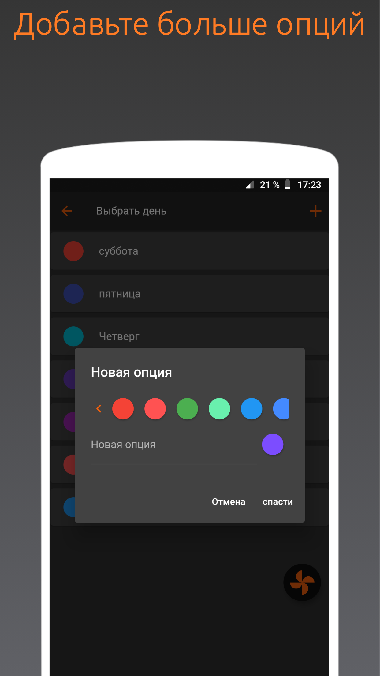 Не можете решить, какой вариант выбрать? Вращайте колесо и ждите, пока рулетка решит за вас. Выбирайте вещи наугад, просто создайте свою индивидуальную рулетку, а затем вращайте колесо, и когда оно остановится, ваше решение будет принято. Это так просто - используйте эту Решительную рулетку - Спин, чтобы Решить сейчас. Иногда необходимо принимать случайные решения, я знаю, когда вы с друзьями и не согласны, что делать, что есть или куда идти. Мы представляем это приложение, в котором вы можете создать рулетку, добавить свои опции и, наконец, прокрутить решение рулетку. Принятие решений легко новое приложение для принятия решений рулетка. Если вы испытываете трудности в принятии решения, то рулетка, несомненно, поможет вам быстро принять решение по всем вопросам. Вращайте колесо и решайте его быстрее, используя приложение для принятия решения в рулетке. раскрутить колесо и выбрать для единоличного решения. Привлекательные прялки со скоростью и анимацией помогут вам принимать решения. Колесо для решения вращающихся колес принимает быстрые решения, вращая колесо. Это приложение ориентировано на помощь в процессе случайного принятия решений, основными функциями которого являются: * Создание, удаление или обновление решения рулетки. * Создание, удаление или обновление параметров колеса. * настроить параметры для создания собственного колеса рулетки. * Спина, чтобы решить * Многие настройки Вы можете использовать свои индивидуальные рулетки в Просто вращайте колесо, и когда оно остановится, ваше решение будет принято. Это так просто - используйте эту Решительную рулетку - Спин, чтобы Решить сейчас. Использование вами рулетки уже зависит от вашего воображения, потому что есть много игр в рулетку, но среди наиболее заметных применений у нас есть следующие: * Как удачная рулетка, где вы добавляете опции «да» и «нет». * Выберите день: вращайте колесо, чтобы выбрать день недели. * Что мы едим? : Индивидуальная рулетка, чтобы решить, что вы хотите съесть. * Выберите номер: вращайте колесо, чтобы выбрать номер. * Выберите цвет: вращайте колесо, чтобы выбрать цвет. * Настройка рулетки: вы можете настроить содержимое в каждом разделе без ограничений.