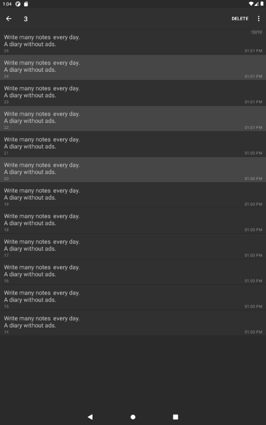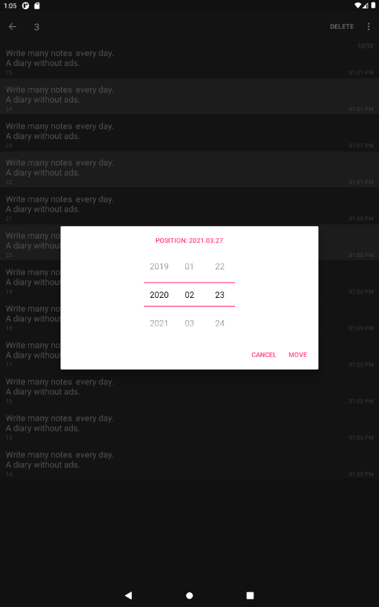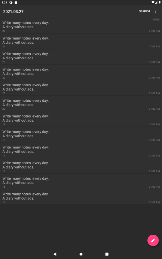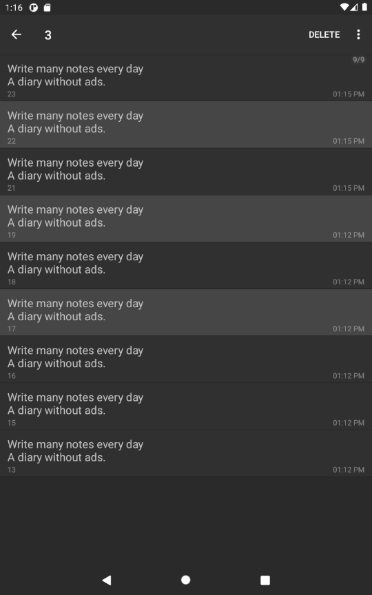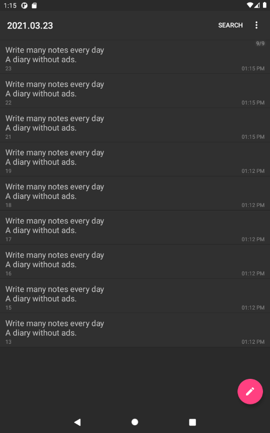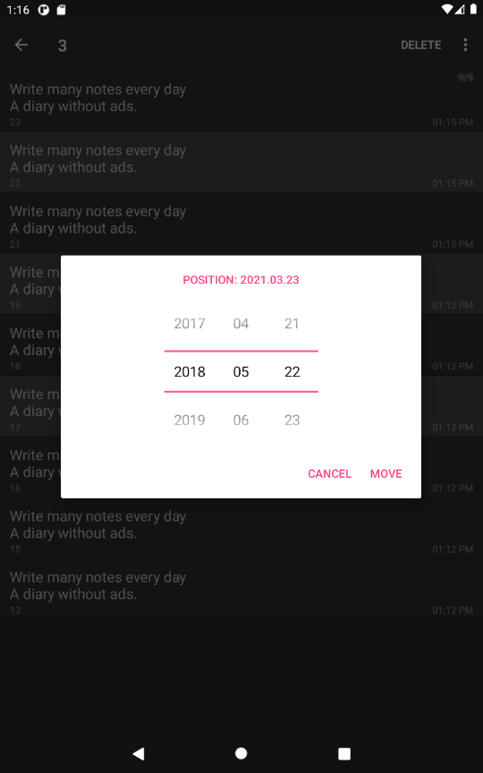 Вы можете ввести и сохранить множество заметок по дате. Использование данных (очень важно) Это автономное приложение, которое не поддерживает автоматическое резервное копирование. Если вы перезагрузите телефон или удалите приложение, сохраненные Содержимое также удаляется, поэтому будьте осторожны.