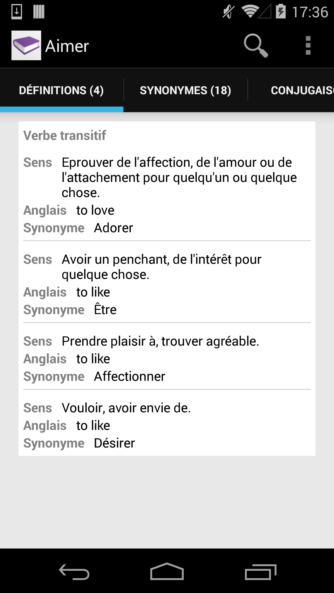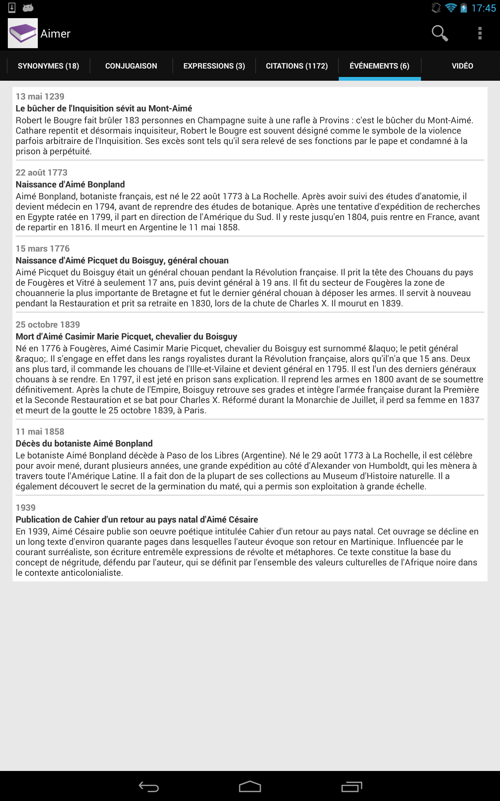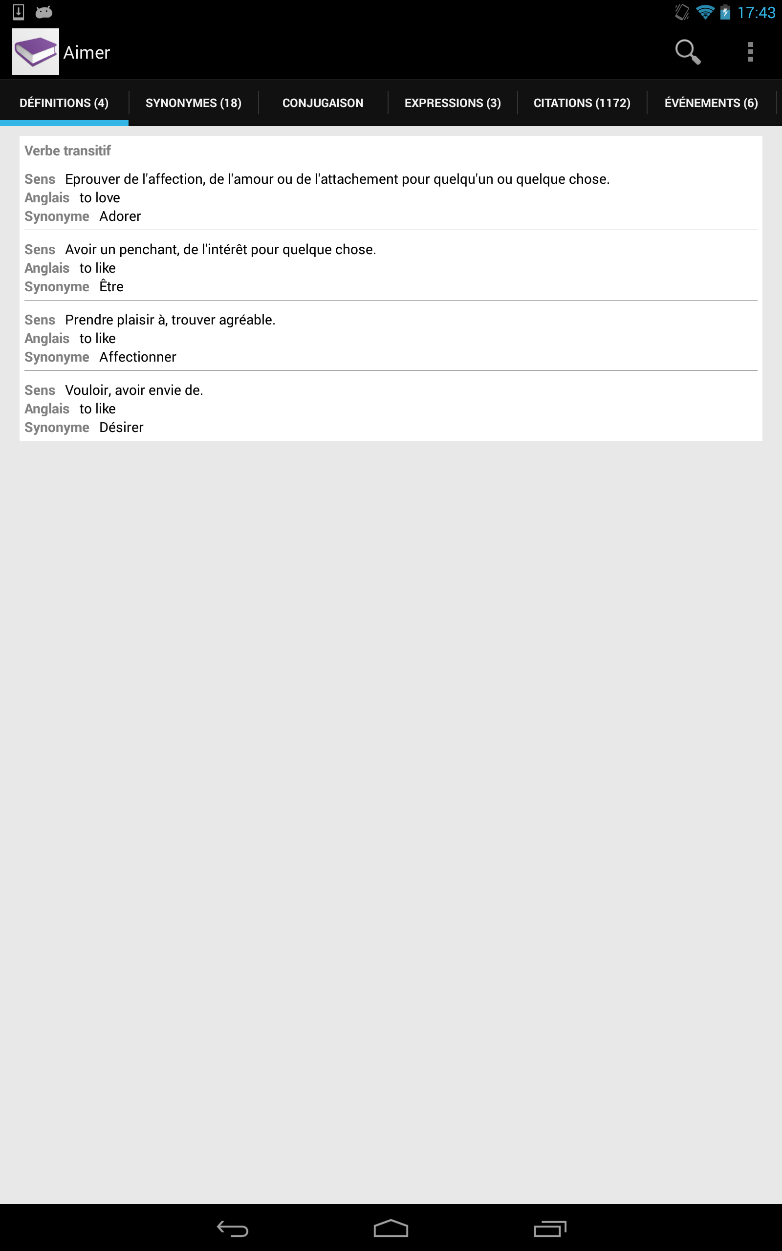 - 6 dictionnaires en 1 : français, synonymes, expressions, conjugaison, citations, histoire
