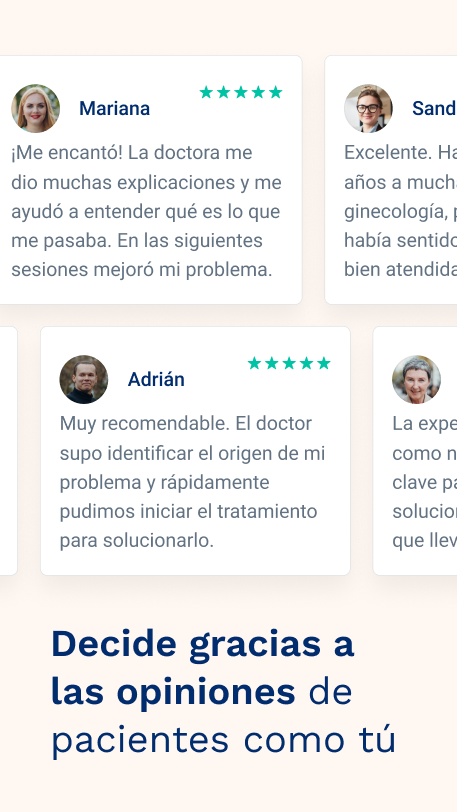 Позаботьтесь о своем здоровье с Doctoralia: найдите лучших специалистов рядом с вами и запишитесь на прием за несколько минут, где бы вы ни находились.