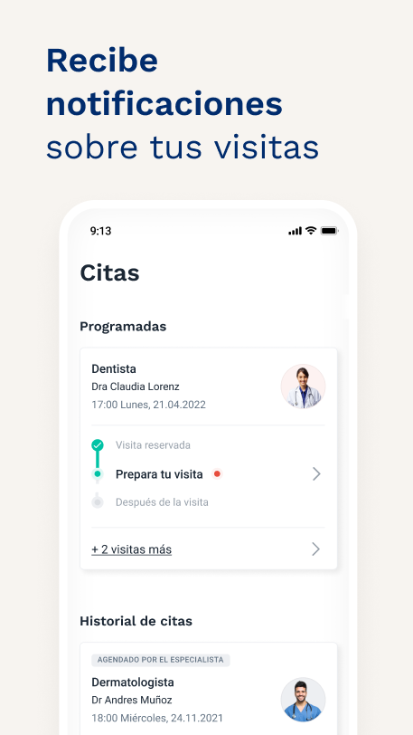 Скачав наше приложение, вы получите доступ к более чем 180 000 специалистов со всей страны, чтобы быстро и легко записаться на прием к врачу прямо с вашего мобильного телефона. Вы можете фильтровать результаты поиска по специальности, городу, почтовому индексу, лечению, медицинскому страхованию (Allianz, AXA, Mapfre, Seguros Monterrey, Banorte Generali, Inbursa Inburmedic, Plan Seguro, GNP Seguros, Atlas, Zurich и т. д.) и даже искать напрямую. на карте найти ближайшего специалиста.
