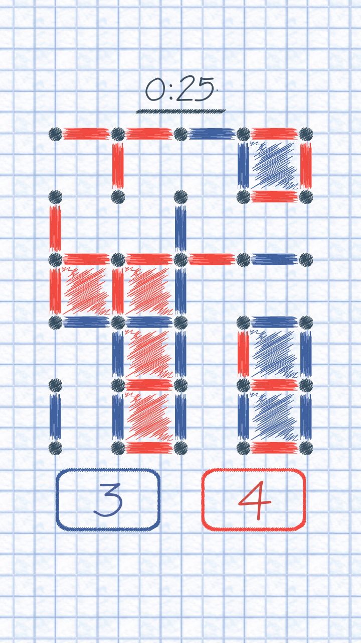 Соединяйте точки линиями, чтобы "закрыть" квадрат. Игрок с бОльшим количеством квадратов выигрывает!