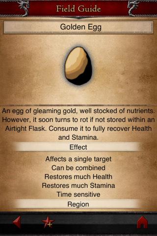 A catalogue of items and materials scattered throughout the land of Gransys! Just like the Citizen Registry, you can narrow your search by location and effect. Find out what plants and meats are safe to eat and what region to find them in all at a glance. There are many rare items waiting to be discovered as well!
