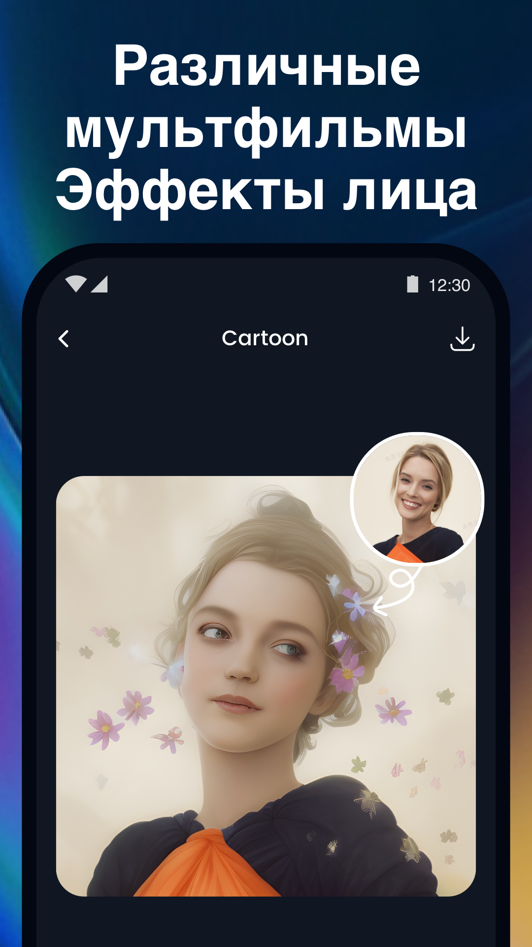 Технология искусственного интеллекта позволит быстро создавать цифровые произведения искусства за считанные секунды. DreamFace предоставляет вам на выбор широкий спектр художественных стилей, таких как чистый смешанный стиль, сексуальный кот, киберпанк, стиль спортивного мальчика и т. д., а также различные мультяшные стили, такие как дьявол, аниме, романтическая пара и т. д. Вам понравится тур по миру ACG!