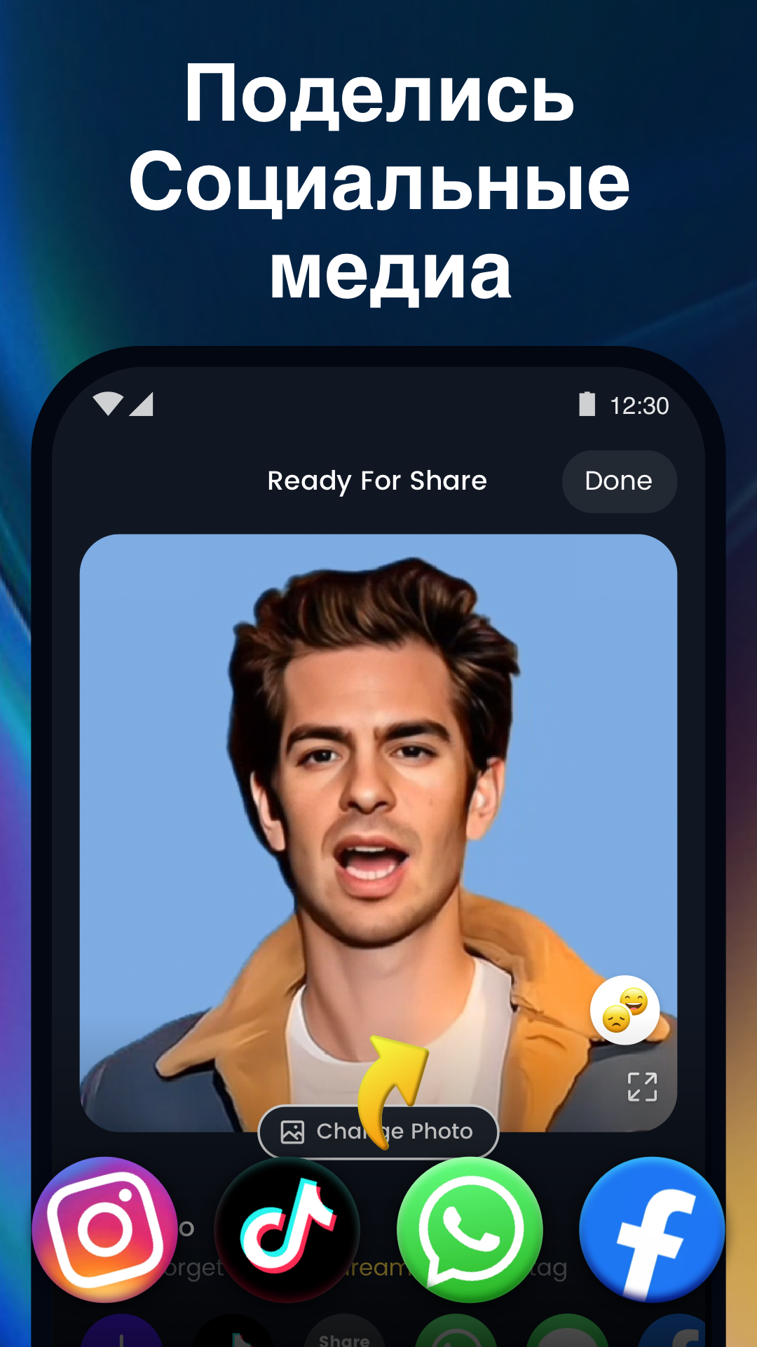 - Просто загрузите фотографию, выберите свою любимую песню и заставьте свою фотографию петь под нее!