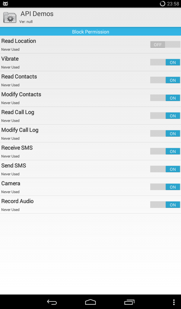 Android (since v4.3) has provided a feature "AppOps" to limit app to access system functions (e.g. Notification, Camera, GPS, etc), but it is hidden API for now. This app allow user to use AppOps feature via ROOT access. Compare to other permission manager app which use "system process injection" method, AppOps is more safe, reliable, and easy to use.