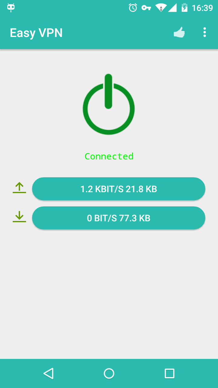 Откройте "Easy VPN (бесплатно)" приложение и нажмите на Черном кнопки.