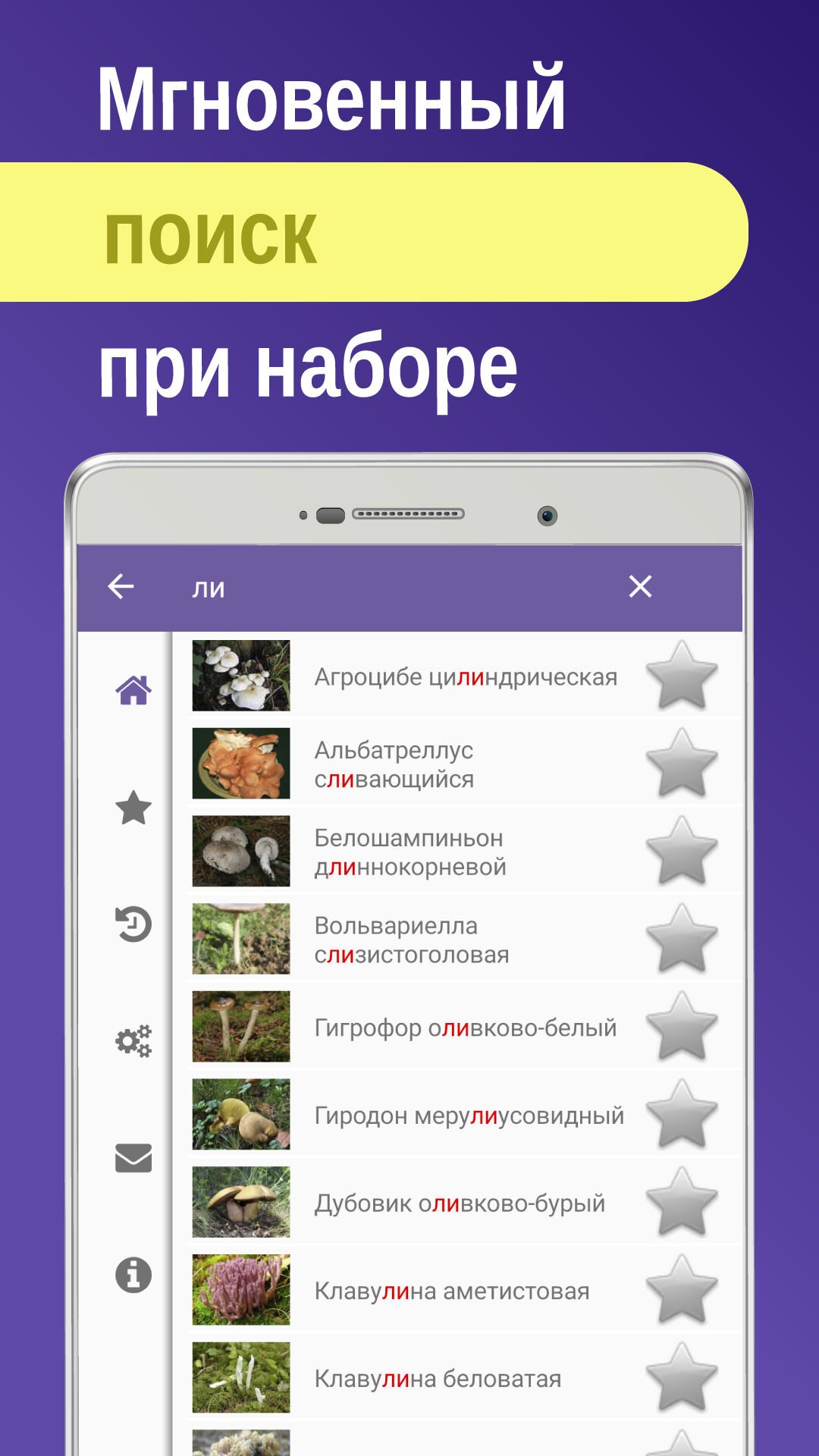 • работа в автономном режиме - база данных, поставляемая с приложением, не требует подключения к Интернету при поиске;