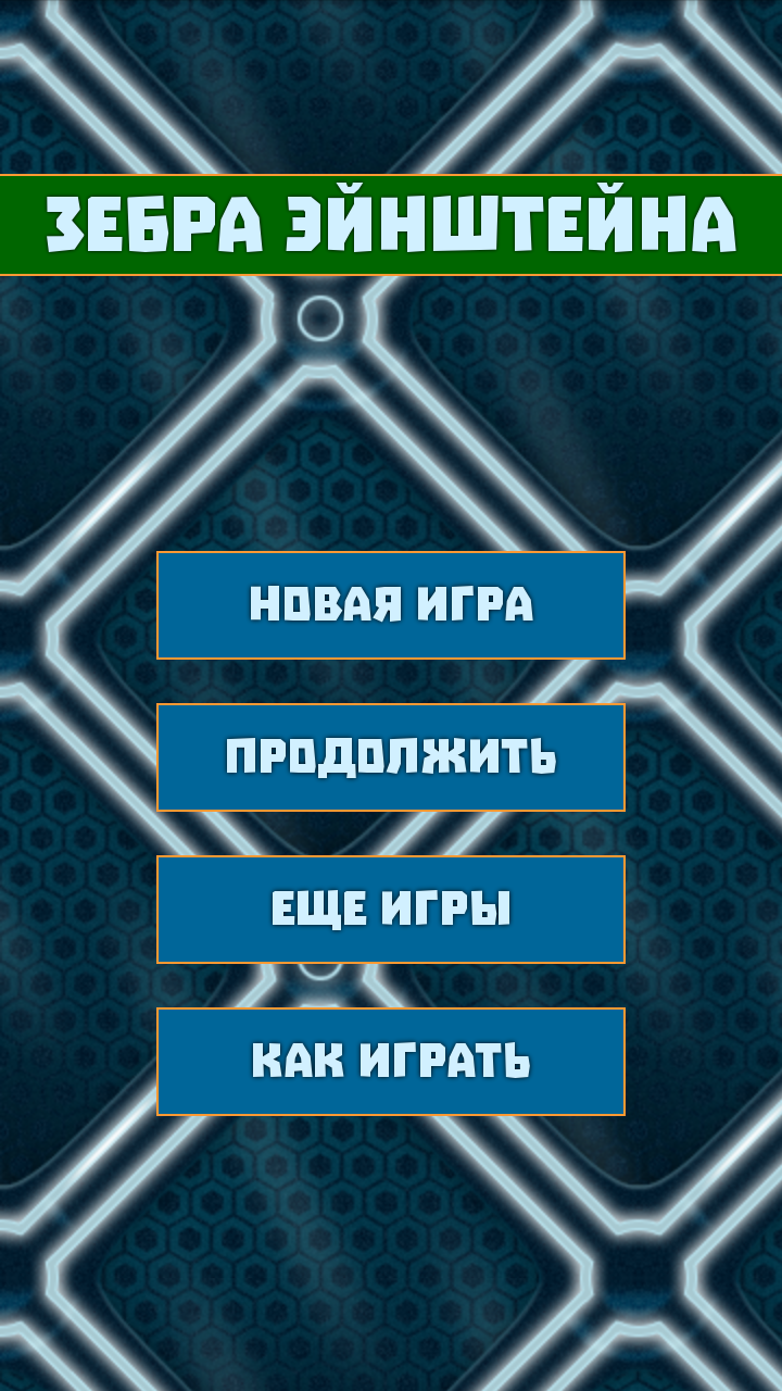 Зебра Эйнштейна - увлекательная головоломка, где нужно определить положение элементов используя подсказки. • научись основам игры на легком уровне • освой игру на среднем уровне • используй свои мозги по полной на тяжелом уровне Как быстро ты сможешь разгадать ее? ОСОБЕННОСТИ: - все на русском языке - легка в освоении - три уровня сложности - счетчик времени разгадывания - нет покупок через приложение Желаем приятно провести время за увлекательным занятием – разгадыванием Зебры Эйнштейна!