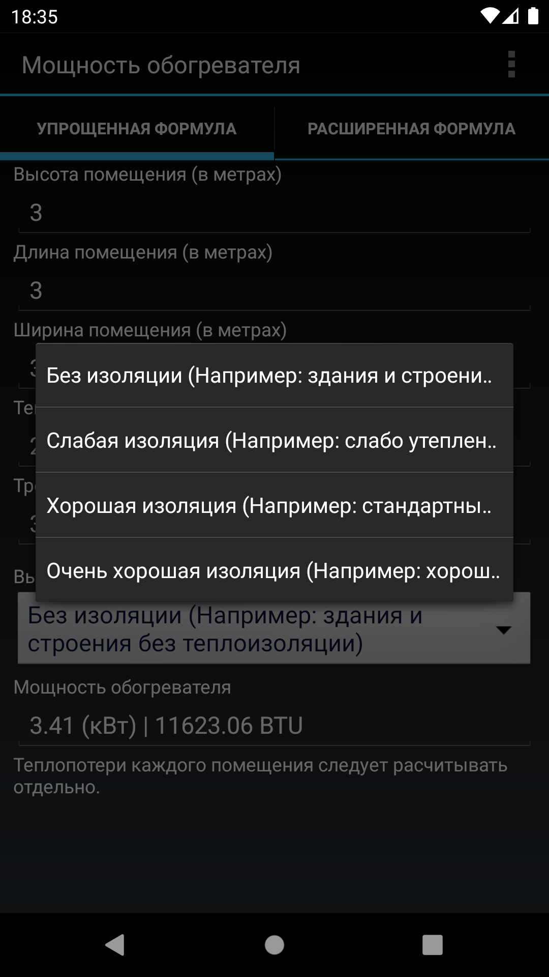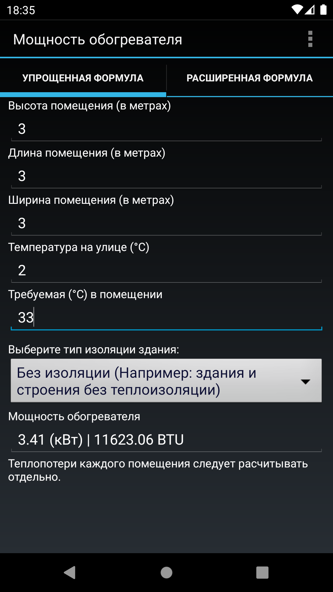 Расчет мощности обогревателя