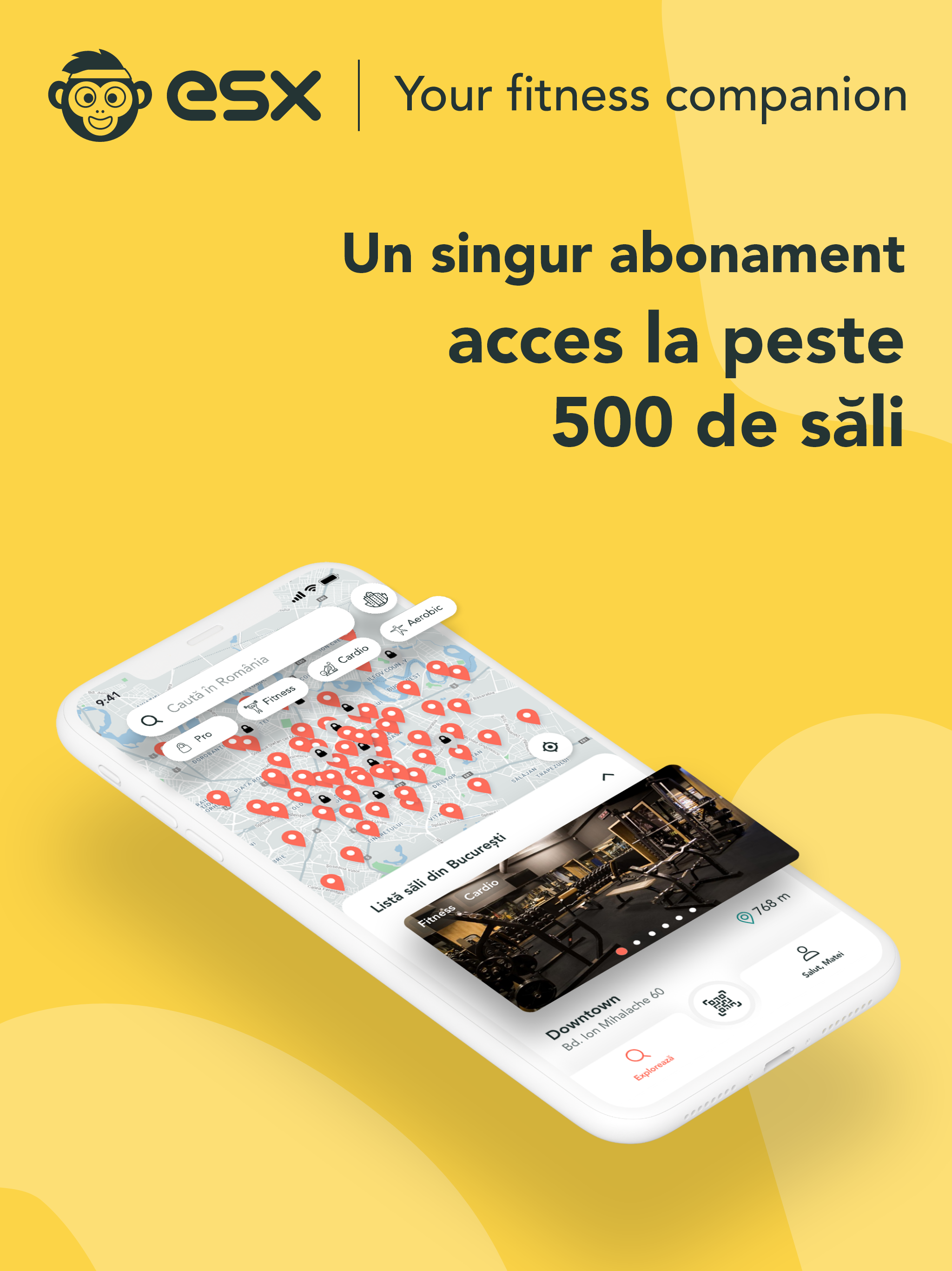 Откройте для себя крупнейшую сеть спортивных залов и спортивных центров в Румынии, открытую для любого человека, только с помощью приложения ESX! В настоящее время ESX имеет сообщество, насчитывающее 200 000 участников из более чем 100 городов Румынии, и пользователи платформы уже получили доступ к партнерским комнатам, используя приложение более 5 миллионов раз. Воспользуйтесь преимуществами ежемесячной подписки, которая дает вам ежедневный доступ примерно к 500 спортивным центрам и фитнес-залам в более чем 100 городах Румынии. Независимо от того, решите ли вы заняться фитнесом сегодня или йогой завтра, ESX предоставит вам выбор любимого занятия. Просто, быстро и эффективно! Загрузите приложение ESX прямо сейчас и станьте частью крупнейшего сообщества любителей фитнеса в Румынии. Наслаждайтесь динамичными спортивными впечатлениями в лучших тренажерных залах и спортивных центрах сети ESX по всей стране! Сделано с ❤️ в Румынии