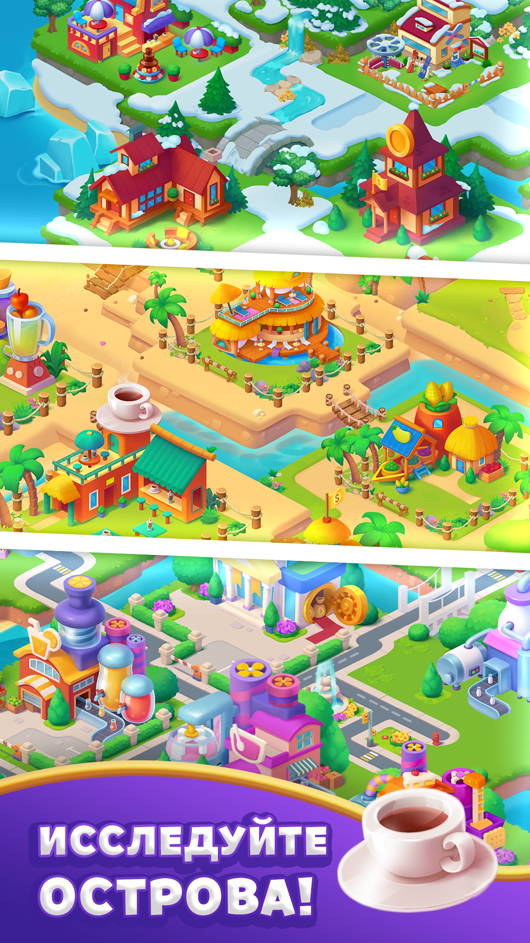 ►Исследуйте новые уникальные карты и захватывающие области для расширения вашего островного города!