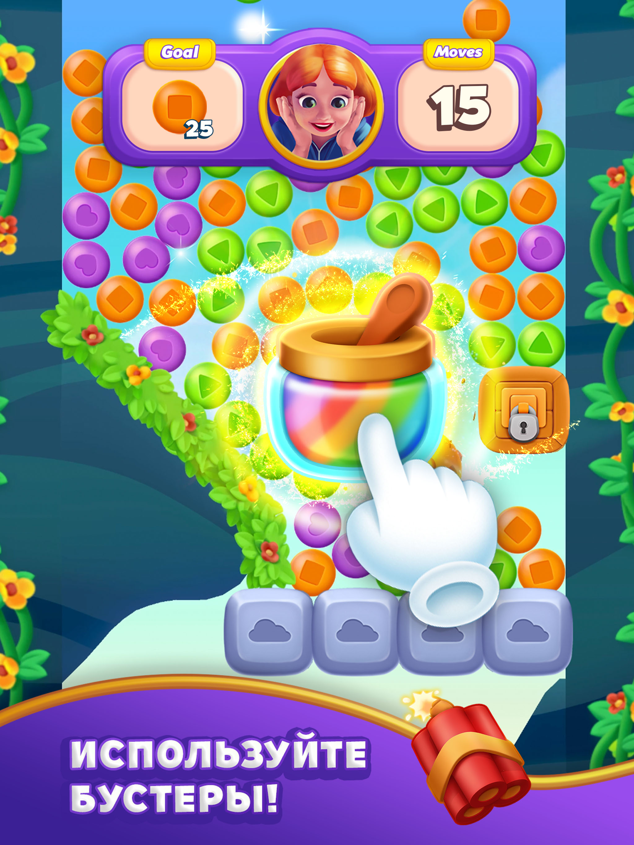 ►Используйте усилители в игре и вне игры, чтобы лопать больше пузырей и решать головоломки!