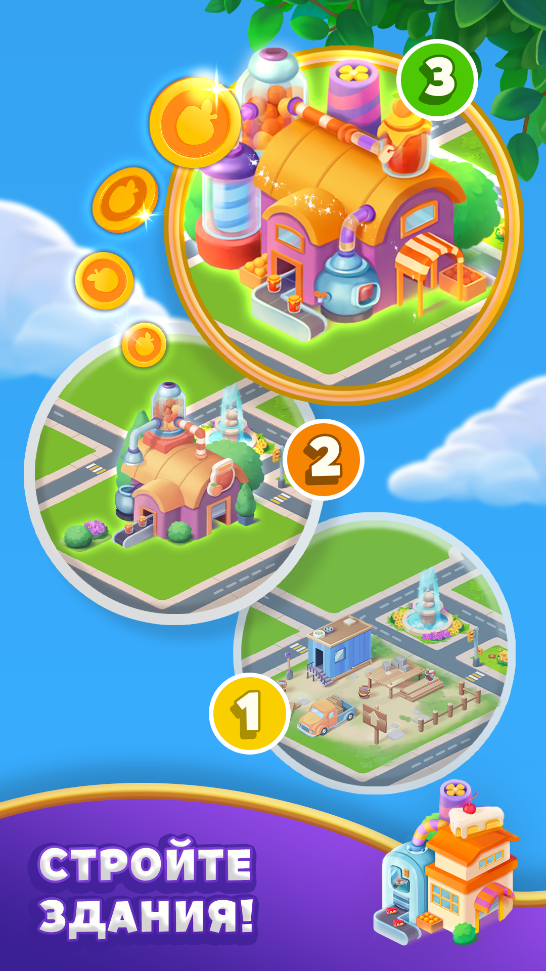 ►Создавайте и проектируйте свой собственный уникальный островной город, если хотите сделать перерыв от лопания пузырей, спасения животных и решения головоломок с пузырями!