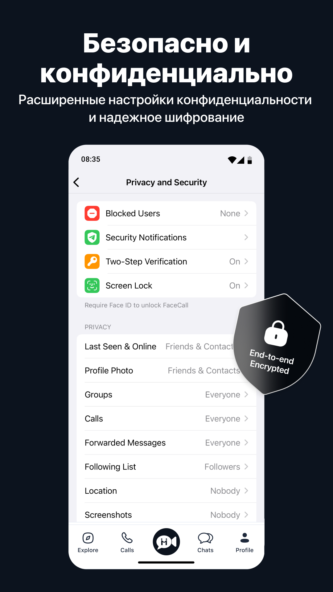 • Безопасность и конфиденциальность: Ваша конфиденциальность — наш приоритет. FaceCall построен с использованием передовых мер безопасности для защиты вашей информации и сохранения ваших коммуникаций в тайне.