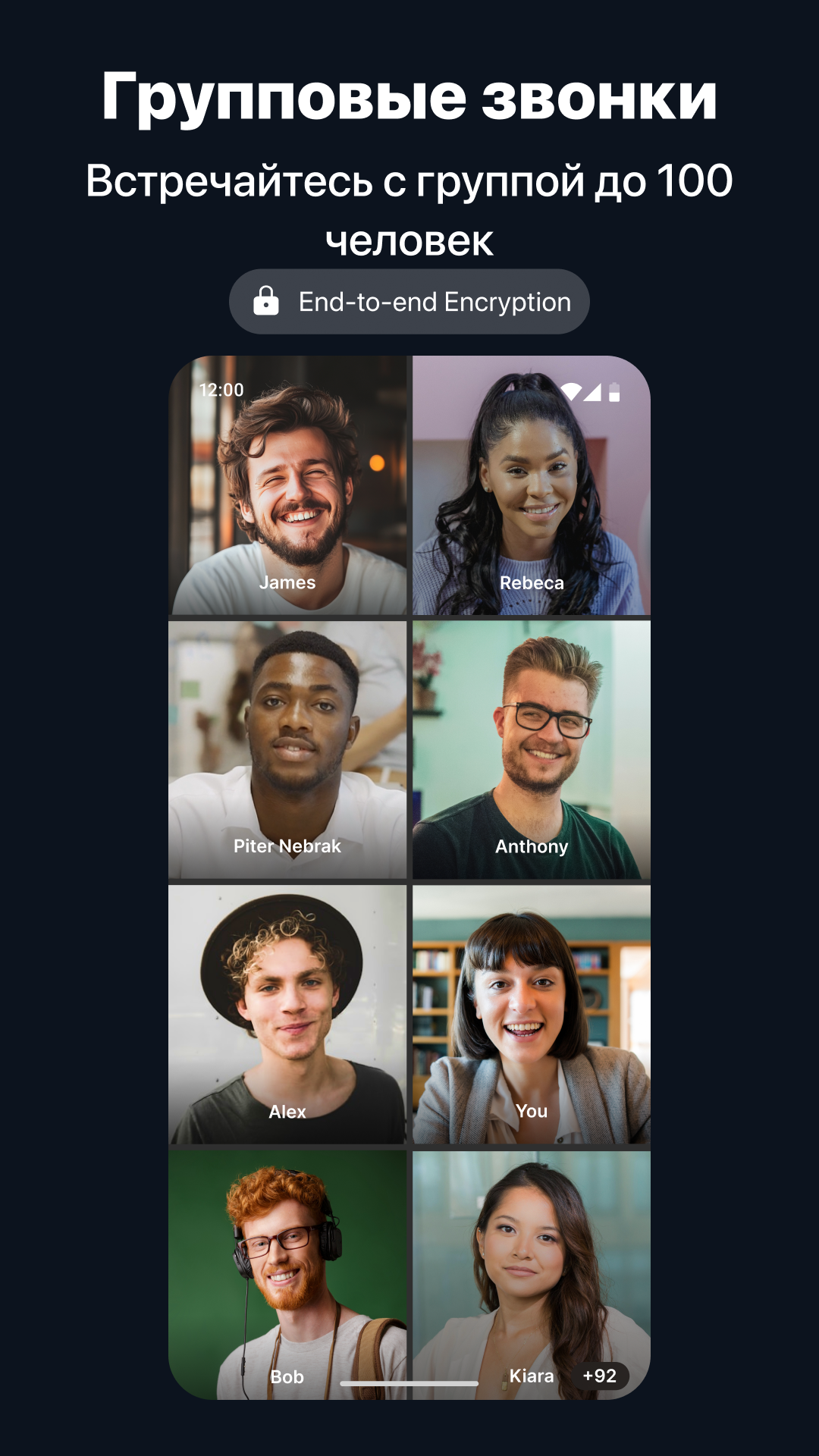 • Подключайте до 100 участников в одном видеозвонке: Собирайте большие группы для личных бесед, презентаций или совместных обсуждений.