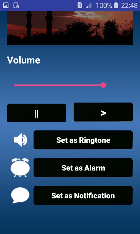 تطبيق أروع أصوات الأذان لرنات للهاتف ايقظني فجرا رنات الإستيقاظ لصلاة الفجر ايقظني فجرا هو تطبيقل نغمات لمنبه الفجرو تصميمه التطبيق سهل جدا و سهل في الإستخدام. حدد فقط الصوت للإستماع إليه وتعيين كنغمة رنين أو إنذار أو كإشعار الهاتف. الأصوات تساعدك على على الحماس للاستيقاظ لصلاة الفجر. ايقظني فجرا هو تطبيق ليست فيه حاجة إلى الإنترنت لاستخدام التطبيق. يتم تضمين نغمات التنبيه للفجر في التطبيق وليس هناك حاجة لتحميلها.
