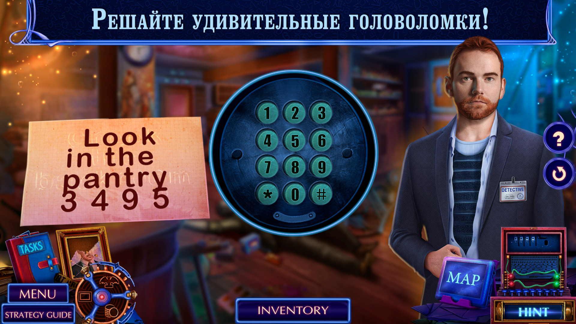 Осуществляйте поиск предметов на русском языке и играйте совершенно бесплатно, но если вы застряли по ходу игры - покупайте подсказки, которые помогут вам быстрее прогрессировать в игре и сюжете!
