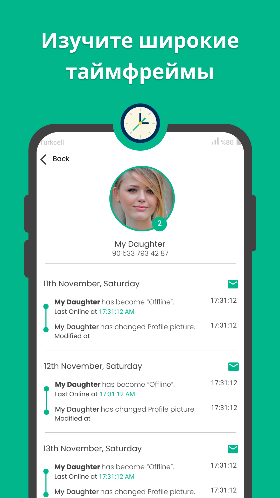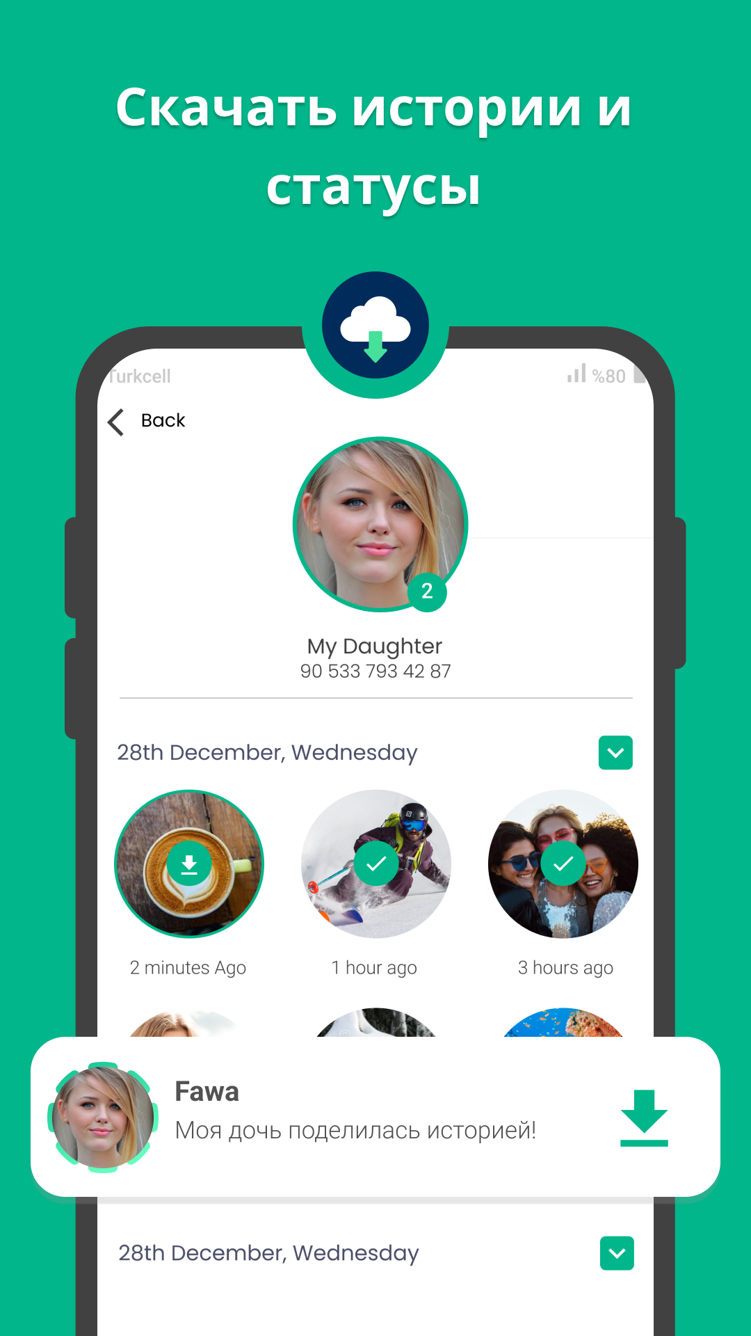 Хотите знать, сколько времени ваш ребенок тратит на телефон, что он делает в Интернете, с кем он разговаривает и когда? Давайте рассмотрим это вместе! Fawa — очень эффективный инструмент мониторинга, который отслеживает и анализирует онлайн- и офлайн-активности, статусы, истории и последнее посещение в популярных на сегодняшний день приложениях WhatsApp, Telegram, Instagram. • Синхронизация устройства Синхронизируйте свое устройство, следуя инструкциям в приложении, и начните использовать его прямо сейчас! • Бесплатная пробная версия Вы можете использовать приложение совершенно бесплатно и пользоваться всеми его функциями без перерыва. • Последнее посещение и онлайн-статус Вы можете следить за номерами, последнее посещение которых отключено. • Мгновенные онлайн/офлайн уведомления Вы получите мгновенное уведомление, когда люди, которых вы выберете из своего списка, будут выполнять какие-либо действия. • Загрузка истории и статуса Вы можете загрузить все истории и ситуации, которыми поделились ваши контакты, и мгновенно получать информацию о них. • Добавить несколько контактов Беспрецедентная система, которая может отслеживать многих людей. • Сравните контакты Проверьте, есть ли что-то общее в действиях людей, которых вы добавляете • Подробная отчетность и бесперебойное обслуживание Вы можете загрузить подробные отчеты, которые вы получили, на свой телефон, и вы можете проверить информацию за прошлые даты, когда захотите. • Живая поддержка! Мы предлагаем бесплатную поддержку для всех наших пользователей. Вы можете найти решение проблемы, с которой столкнулись, обратившись к нашим друзьям в службу поддержки в любое время. соглашение о конфиденциальности - Ваша информация не передается никаким сторонним учреждениям/компаниям/приложениям. Все ваши данные хранятся на наших серверах в сквозном зашифрованном виде, пока вы используете приложение. Оно будет удалено автоматически в течение 30 дней после удаления приложения или по вашему запросу. Для получения более подробной информации вы можете ознакомиться с нашим соглашением о конфиденциальности на нашем сайте и в приложении. В дополнение к ним: - Fawa не связана ни с одним из сторонних приложений, доступных на вашем телефоне. - Fawa не вмешивается ни в какие коммуникационные протоколы и не модифицирует никакие файлы в памяти вашего устройства. - Fawa полностью уважает и соблюдает законы ЕС о защите персональных данных, как указано в Политике конфиденциальности и Соглашении об условиях использования. Приложение предназначено только для семейного использования.