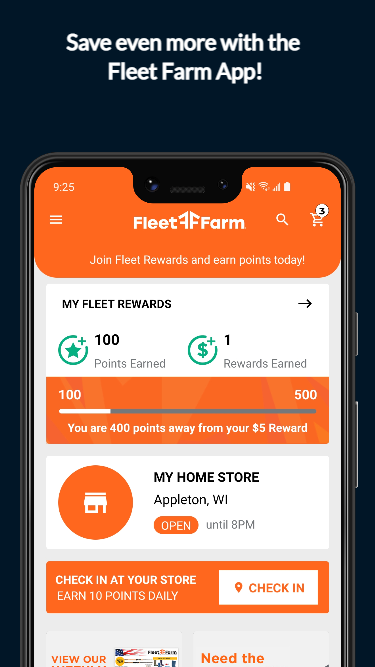 Экономьте еще больше с приложением Fleet Farm! Официальное приложение Fleet Farm предлагает персонализированные предложения, а также вы можете легко управлять своей учетной записью Fleet Rewards®, а также искать и покупать тысячи товаров - все, начиная от спортивных товаров, рыболовного и охотничьего снаряжения, краски, инструментов, уличного электрооборудования, грилей, уличной мебели и т. Д. сельхозтехника, зоотовары, одежда, обувь, бытовая техника и многое другое. Им легко пользоваться, когда вы в пути. Ключевые особенности включают: НАГРАДЫ ДЛЯ ФЛОТА • Создайте учетную запись для автоматической регистрации в нашей программе лояльности FREE Fleet Rewards® • Следите за набранными баллами в разделе «Награды». • Легко обменяйте заработанные вознаграждения при оформлении заказа. • Будьте в курсе событий, выбрав электронную почту или текстовые сообщения. • Если вы в магазине, не забудьте просканировать штрих-код Fleet Rewards при оформлении заказа. ЕЖЕДНЕВНЫЙ РЕГИСТРАЦИЯ В МАГАЗИНЕ Зарабатывайте 10 бонусных баллов ежедневно, просто регистрируясь в вашем местном магазине Fleet Farm. ПОЛУЧЕНИЕ МАГАЗИНА Выберите «Самовывоз за пределами двора» при оформлении заказа и пропустите поездку в магазин! ПОИСК ПО БАРКОДУ Поиск товаров по штрих-коду для получения информации о продукте и ценах. РЕЙТИНГИ И ОТЗЫВЫ КЛИЕНТОВ Смотрите обзоры и звездные рейтинги для тысяч продуктов. Используйте сканер штрих-кода, чтобы отсканировать товар и прочитать, что говорят другие покупатели. Кроме того, вы можете написать свои собственные отзывы прямо в приложении Fleet Farm. СПИСОК ПОКУПОК Спланируйте свой следующий поход по магазинам с функцией списка покупок. ПОИСК МАГАЗИНА Найдите ближайший к вам Fleet Farm *, а также часы работы магазина, номер телефона, адрес и направления. Кроме того, будьте в курсе событий в местных магазинах. * Не забудьте разрешить службам определения местоположения максимально оптимизировать работу. ЕЖЕНЕДЕЛЬНАЯ РЕКЛАМА И СПЕЦИАЛЬНЫЕ ПРЕДЛОЖЕНИЯ У нас всегда есть отличные предложения. С приложением Fleet Farm наша еженедельная реклама, сезонные каталоги и специальные предложения всегда у вас под рукой. Просматривайте страницу за страницей или по отделам, это так просто. PLUS, ПОЛЬЗУЙТЕСЬ ЭТИМИ ПОЛЕЗНЫМИ ФУНКЦИЯМИ: • Управляйте своей учетной записью, просматривайте и отслеживайте недавние заказы, просматривайте и изменяйте домашний магазин несколькими быстрыми нажатиями. • Составьте и поделитесь своим списком желаний Fleet Farm с гордостью обслуживает Средний Запад с 1955 года. Можно сказать, что мы во многом похожи на наших клиентов. Мы верим в уважение традиций, гордимся своей работой и делаем то, что правильно. Мы местные и гордимся тем, что являемся частью сообществ, которым служим. В Fleet Farm вы найдете сердце универсального магазина с опытом и выбором специализированных магазинов. Мы - ваш универсальный магазин с гостеприимным и добрососедским шоппингом. СВЯЗАТЬСЯ С НАМИ: • FleetFarm.com • Facebook.com/fleetfarm • Twitter.com/fleet_farm • Youtube.com/millsfleetfarm • Pinterest.com/fleetfarm • Instagram.com/fleetfarmofficial