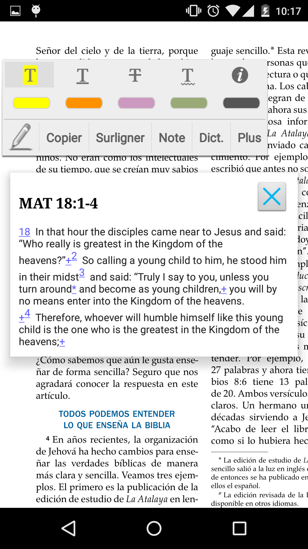Основываясь на отлично «Перевод нового мира Священного Писания» версия Библии, плавучий Библия является изучение инструмент, разработанный, чтобы быть интуитивно понятным и в комплекте с большими дополнениями более простое приложение Библии. ВАЖНОЕ ПРИМЕЧАНИЕ: Rbi8 примечания и ссылки были удалены, чтобы соответствовать jw.org авторского права. Новая версия использует стандартные версии epubs, которые не имеют ссылок. Доступные языки Библии: 66 и рост: Français, английский, испанский, немецкий, Português, Italiano, Ελληνική, тагальском, Română, Magyar, українська, русский, 汉语 (简化字), Slovenščina, 한국어, Polski, Slovenčina, Kreyòl ayisyen, Cebuano, српски, български, 日本語, čeština, العربية, Հայերեն, Русский (2015), Shqip, Nederlands, Индонезия, Norsk, Svenska, Việt Nam, Türkçe, ខ្មែរ, қазақ, африкаанс, Eesti, Lingala, Малагасийский, አማርኛ, 汉语 (пиньинь), Hrvatski, кыргызча, Илоканский , Catalán, 漢語 (繁體字), हिंदी, Twi ... Особенности : - Отдельное приложение с привлекательной Material Design. - Удобная навигация для мобильных и таблетки. - переключение Быстрого языка. - Выделите и ноты (родной для устройств и 4.4 и выше эмулировать на 4.3-) - Регулируемый размер текста. - Multi-колонки текста на планшетных или привет разрешения устройств. - Плавающий режим окна (для MIUI Rom и некоторые другие, пожалуйста, позвольте уведомления в настройках приложения) - интеграция Rbi8 сносок в всплывающих окнах (для пользователей со старыми данными). - Ответ на общие ссылки с стихом Библии в новом окне. - Ответить копировать текст в буфер обмена с библейских стихов в всплывающем окне. - возможности PDF анализирующих для повышения PDF с бликами и библейскими заметками. - закладки - Samsung Multi-Window поддержка - Темы и ночной режим - Разделение экрана на двух языках. - Поиск по ключевым словам. - Показать перекрестные ссылки в новом окне. Открытые возможности: - Другие языки (может быть запрошена в комментариях). - ...