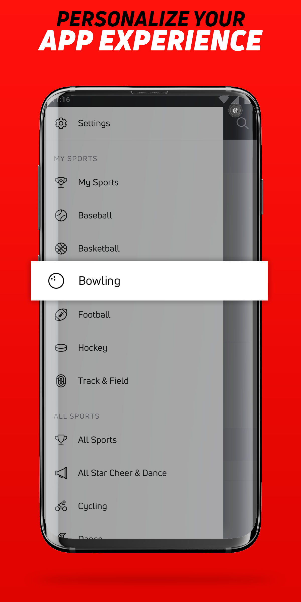 - Персонализируйте свой опыт, выбрав свои любимые виды спорта, команды и спортсменов