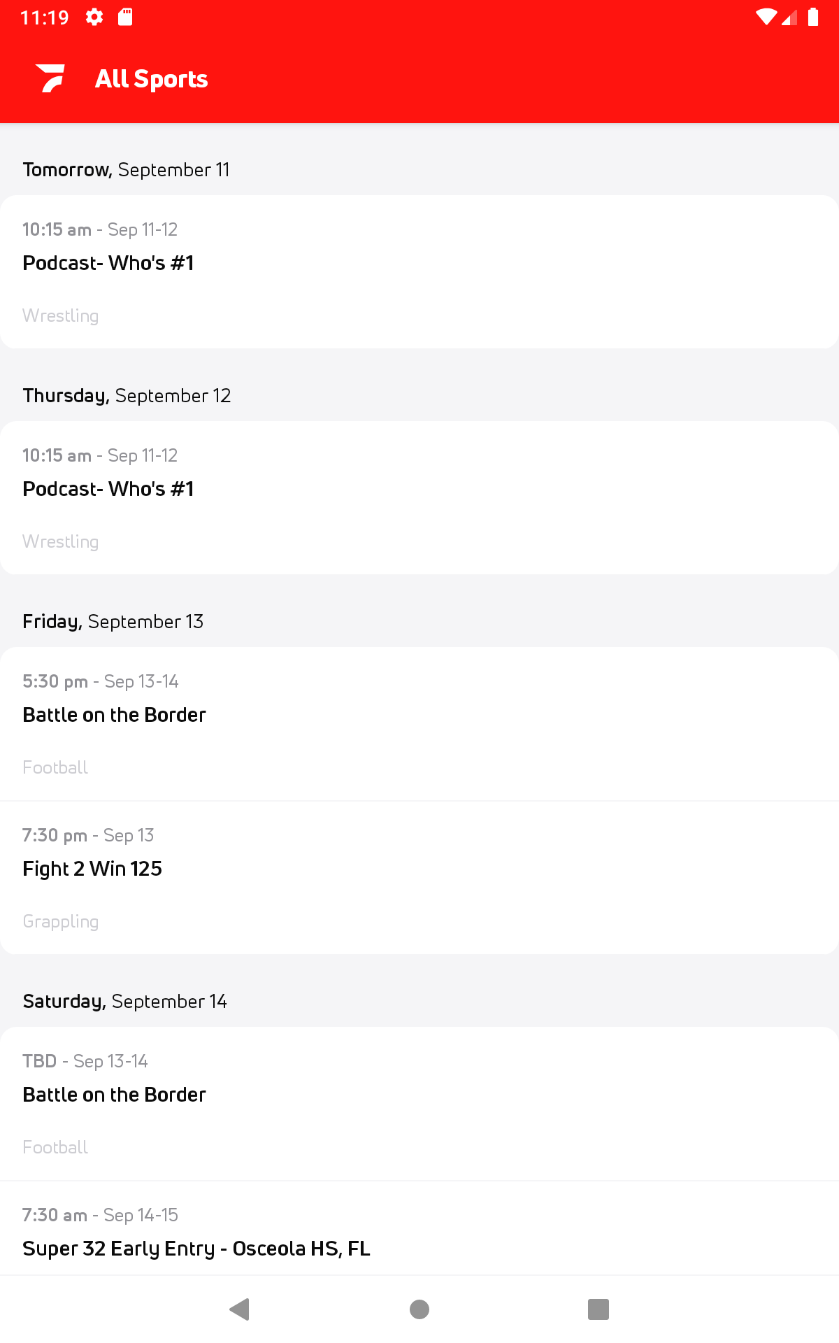 Зарегистрируйтесь на FloSports и получите доступ ко ВСЕМ видам спорта, которые может предложить приложение: борьба, грэпплинг, гонки, марш, трек, велоспорт, MileSplit, университет, софтбол, бейсбол, баскетбол, болельщики, футбол, хоккей, регби, родео, Гимнастика, волейбол, футбол, лакросс, единоборства, соревновательный фитнес, плавание, голос, танцы и многое другое!