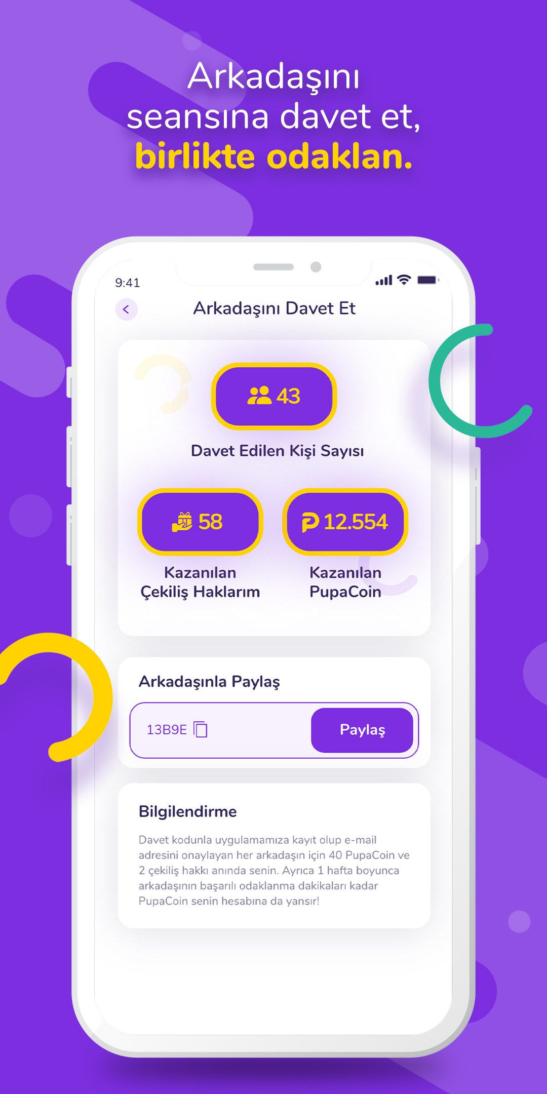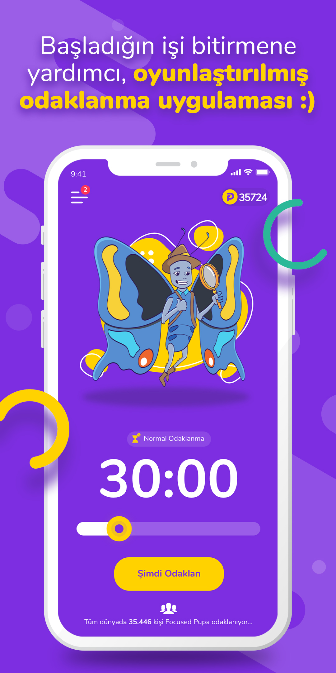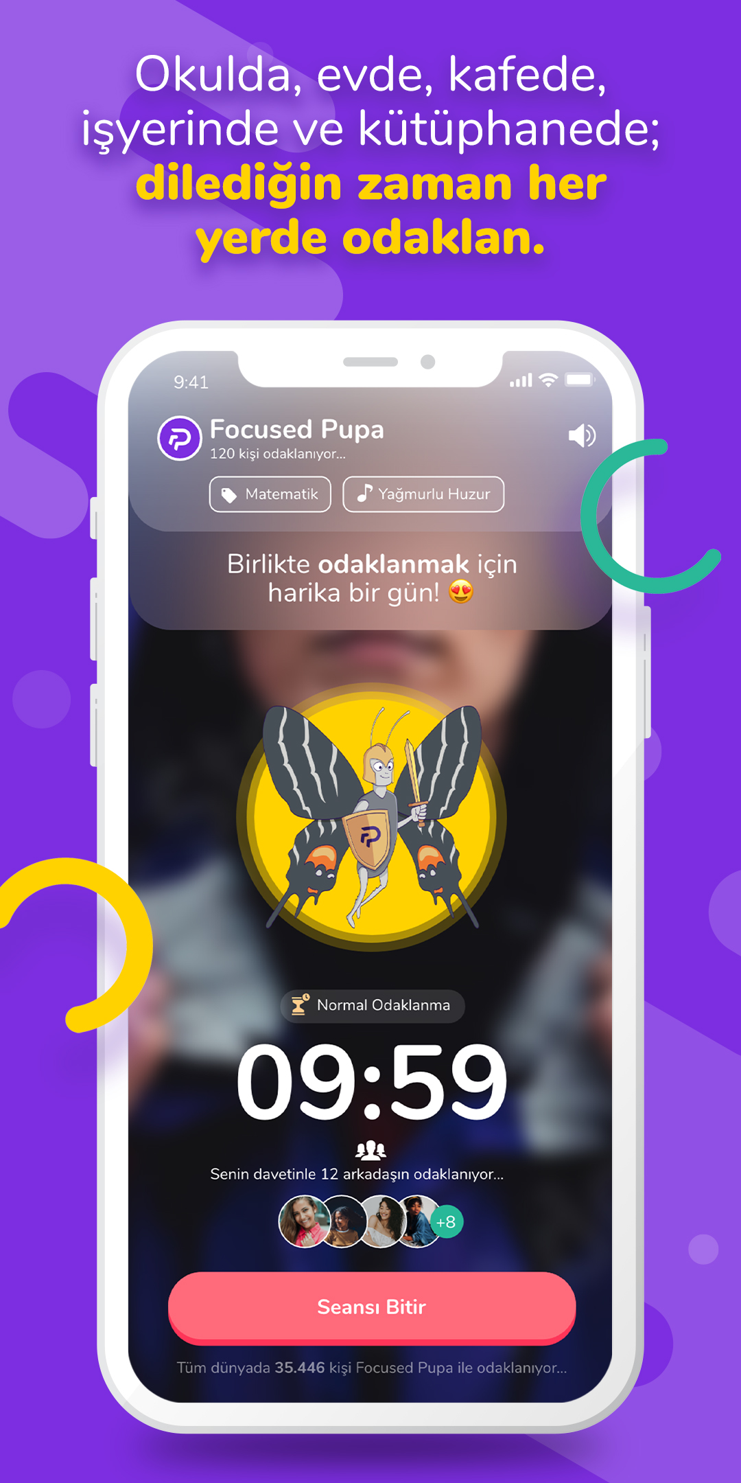 Сфокусированная куколка; Он направлен на то, чтобы проводить драгоценное время со своими близкими, держась подальше от телефона, и позволяет вам выполнять свою работу более мотивированным образом. Пригласив своих друзей на свои сеансы, вы можете сосредоточиться вместе и мотивированно проводить целенаправленные сеансы фокуса со своими друзьями.