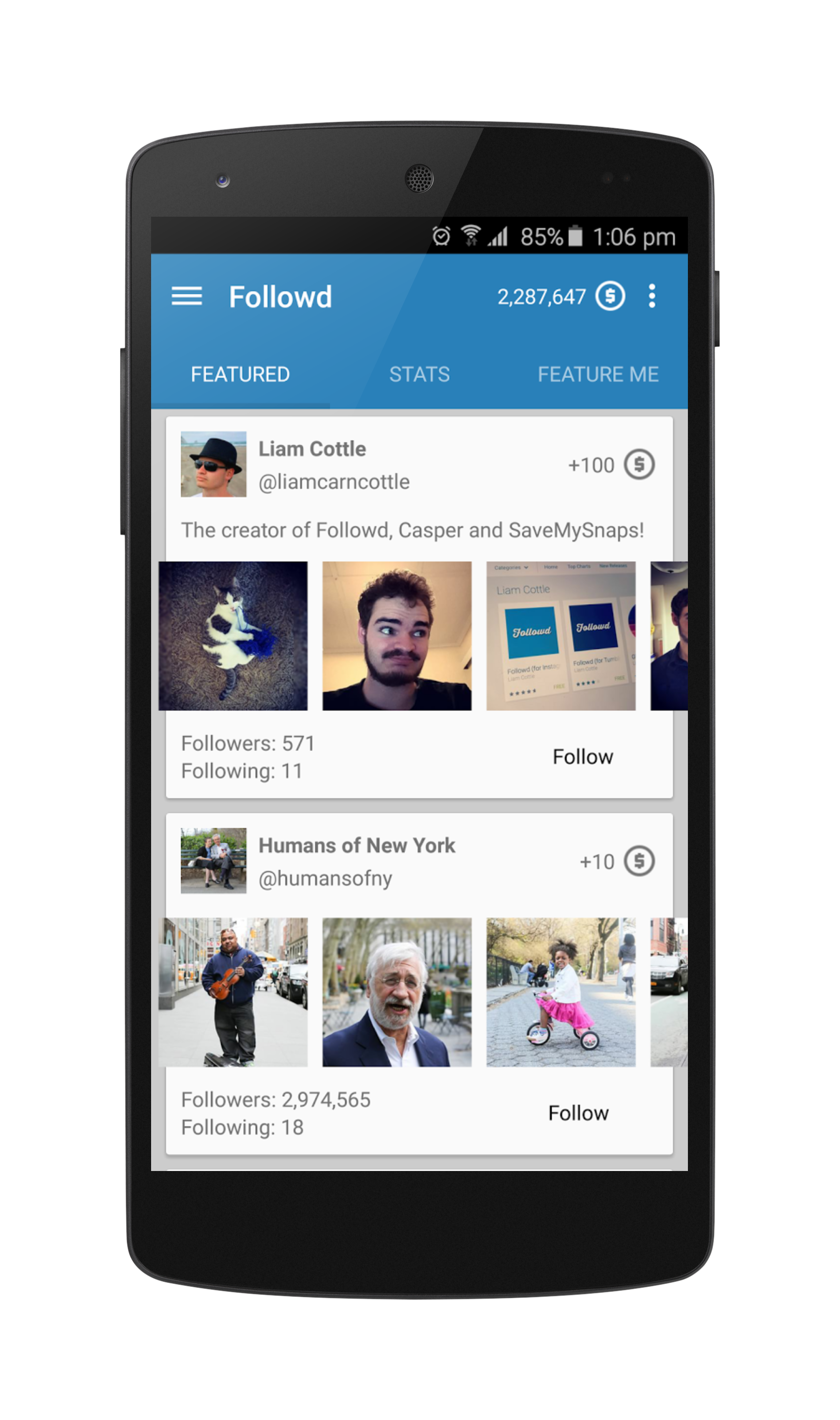 When you have earned enough coins, you will be able to feature your own Instagram account!